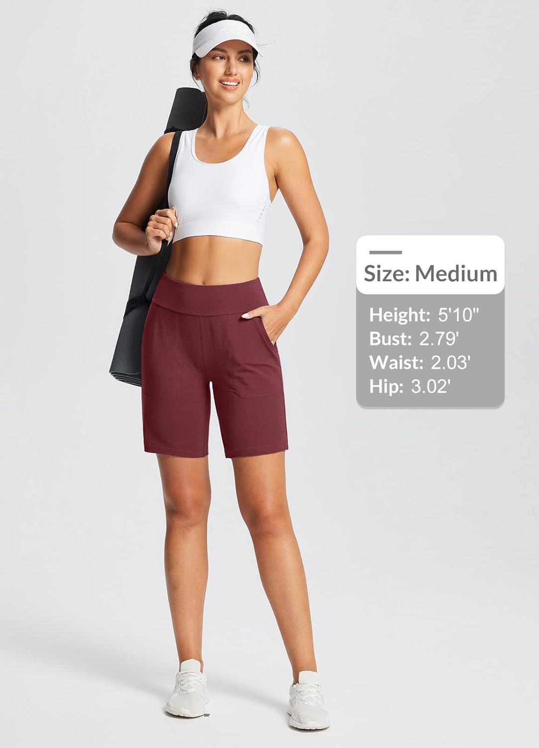 imagebaleaf 8quot Bermuda Long Shorts for Women Cotton Athletic Sweat Tummy Control Casual Lounge SummerWine