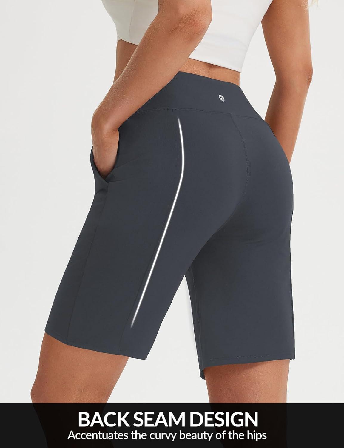 baleaf 9″ Women’s Bermuda Shorts Knee Length High Waisted Long Shorts with Pockets Golf Walking Athletic Running Casual(Dark Gray)