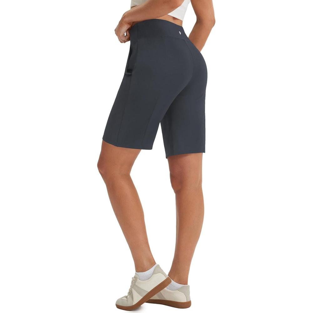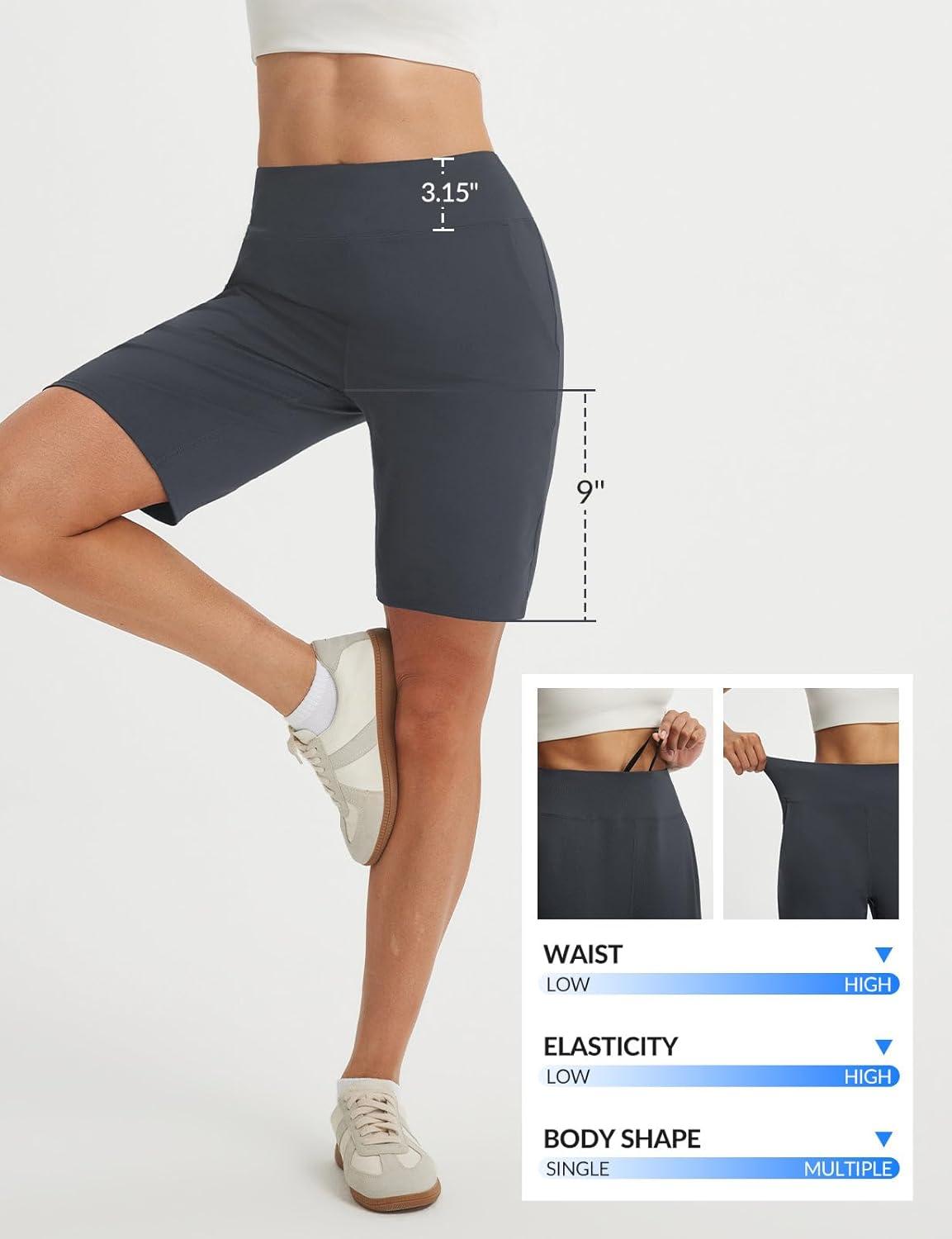 baleaf 9" Women's Bermuda Shorts Knee Length High Waisted Long Shorts with Pockets Golf Walking Athletic Running Casual(Dark Gray)