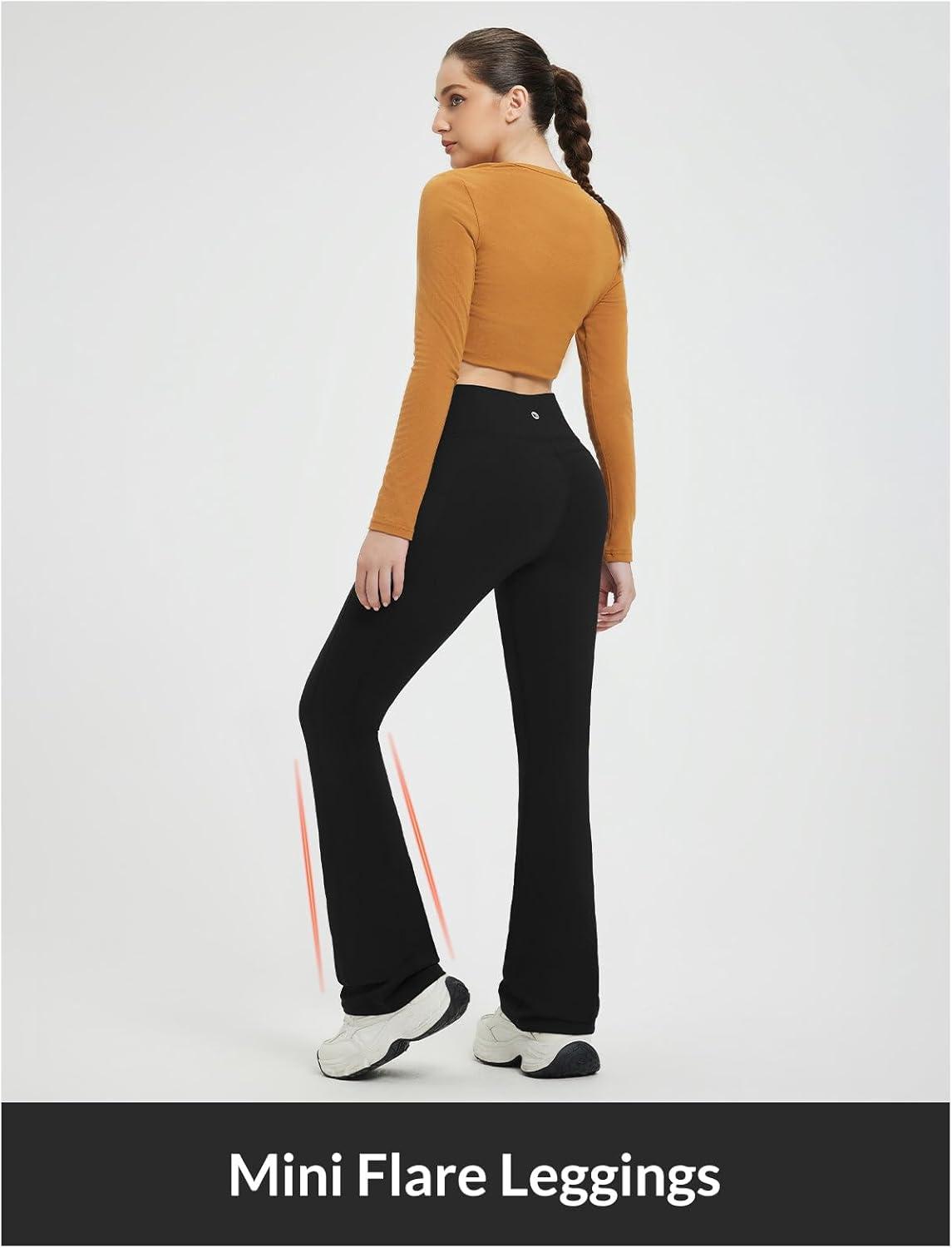 baleaf Fleece Lined Leggings for Women Mini Flare Warm Yoga Pants Stretchy High Waisted with 4 Pockets Workout Casual Pants(Black)