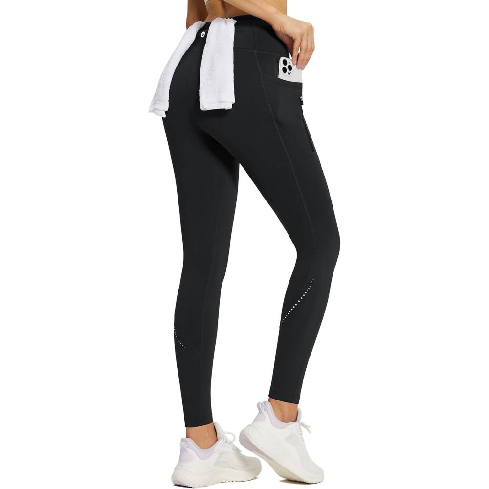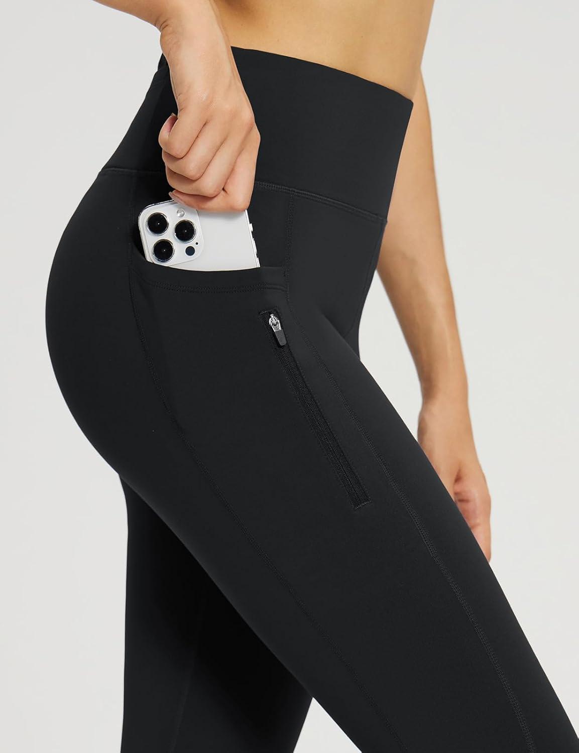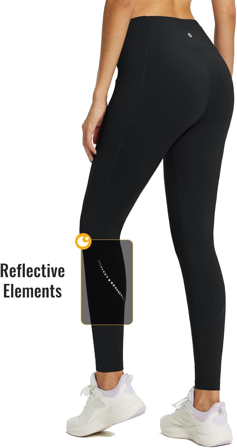 baleaf Women’s High Waisted Fleece Lined Leggings Workout Gym Pants with Pockets Thermal Winter Cold Weather(Black)