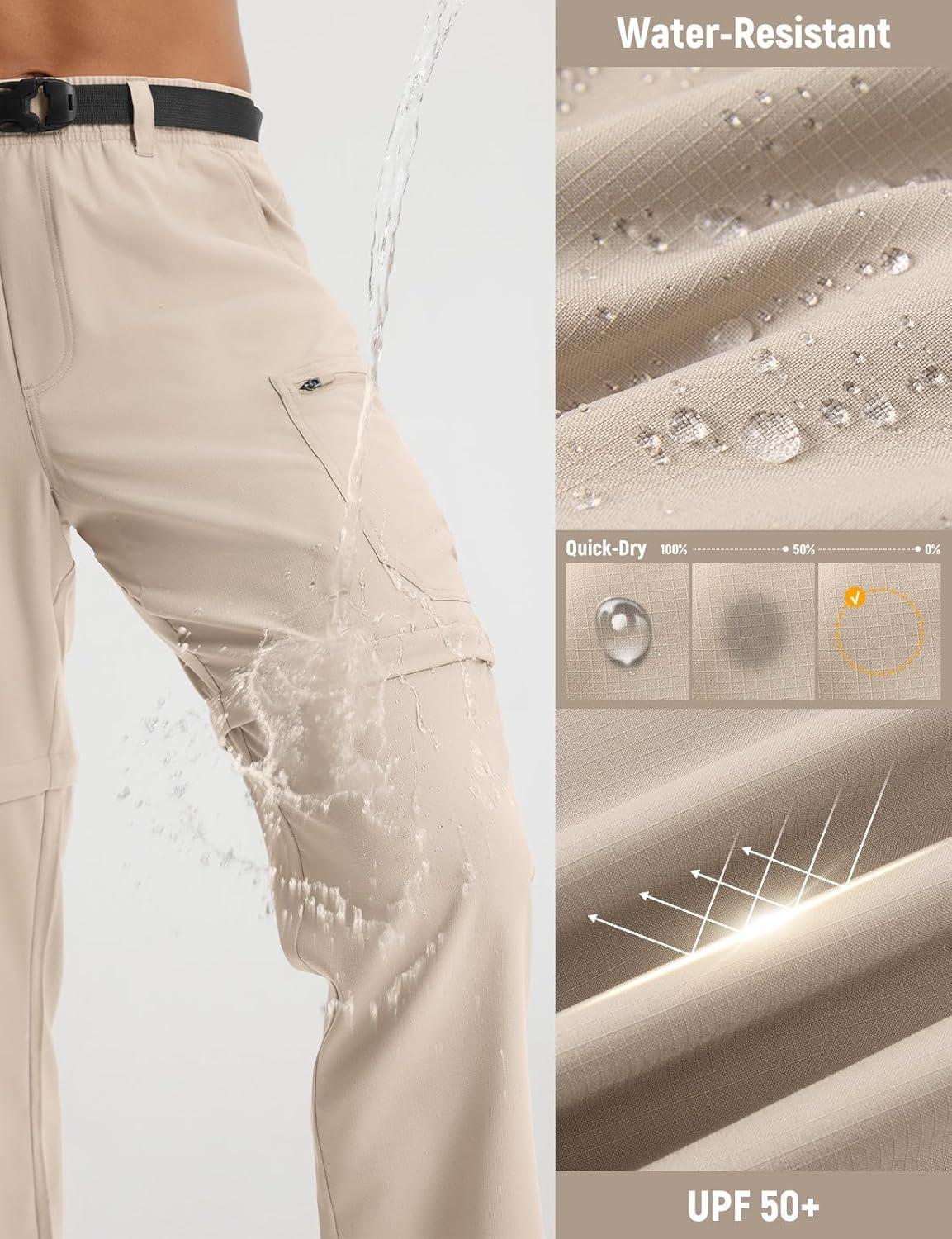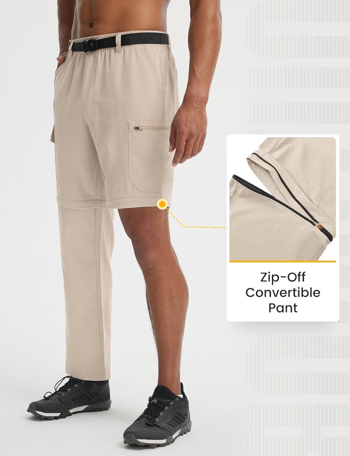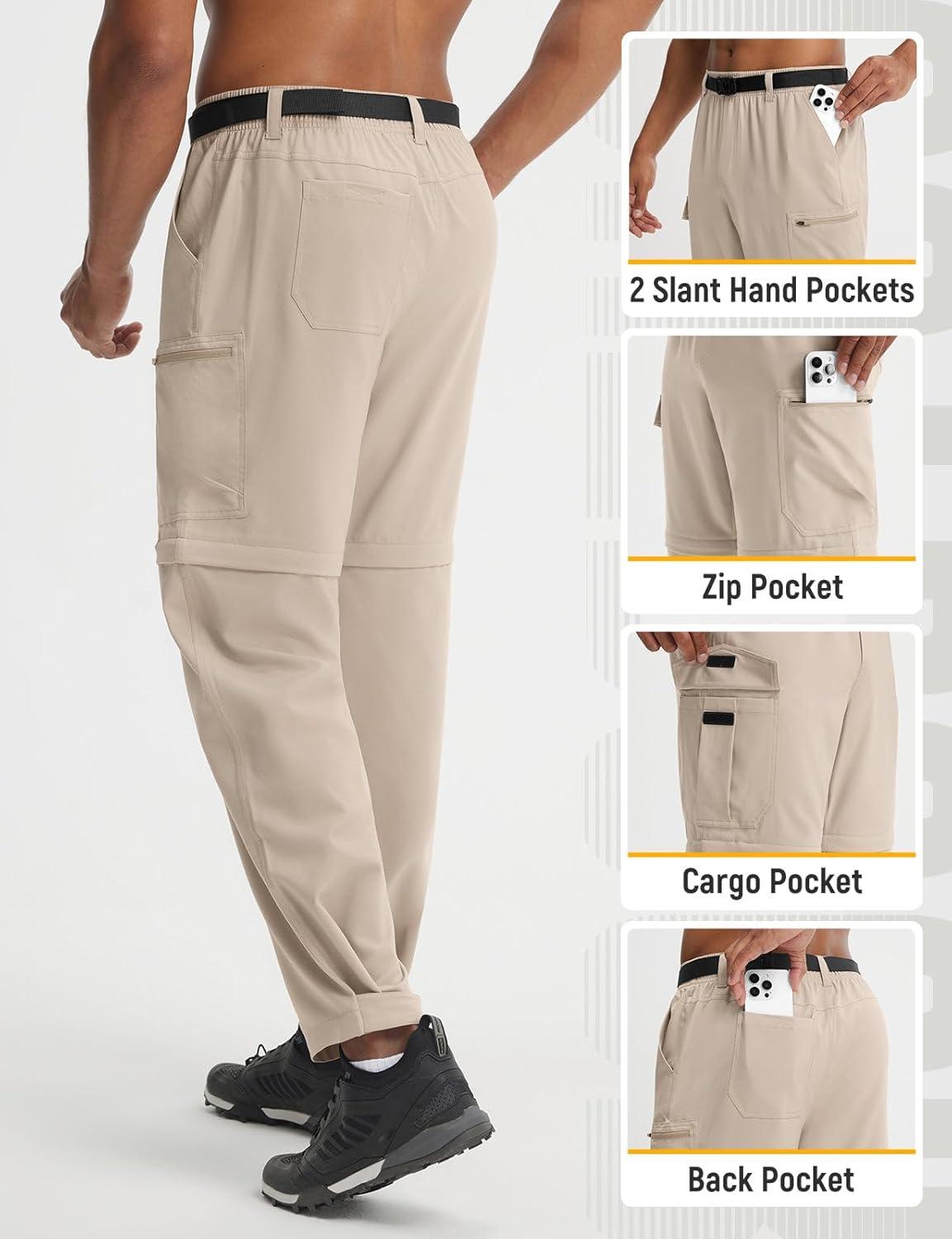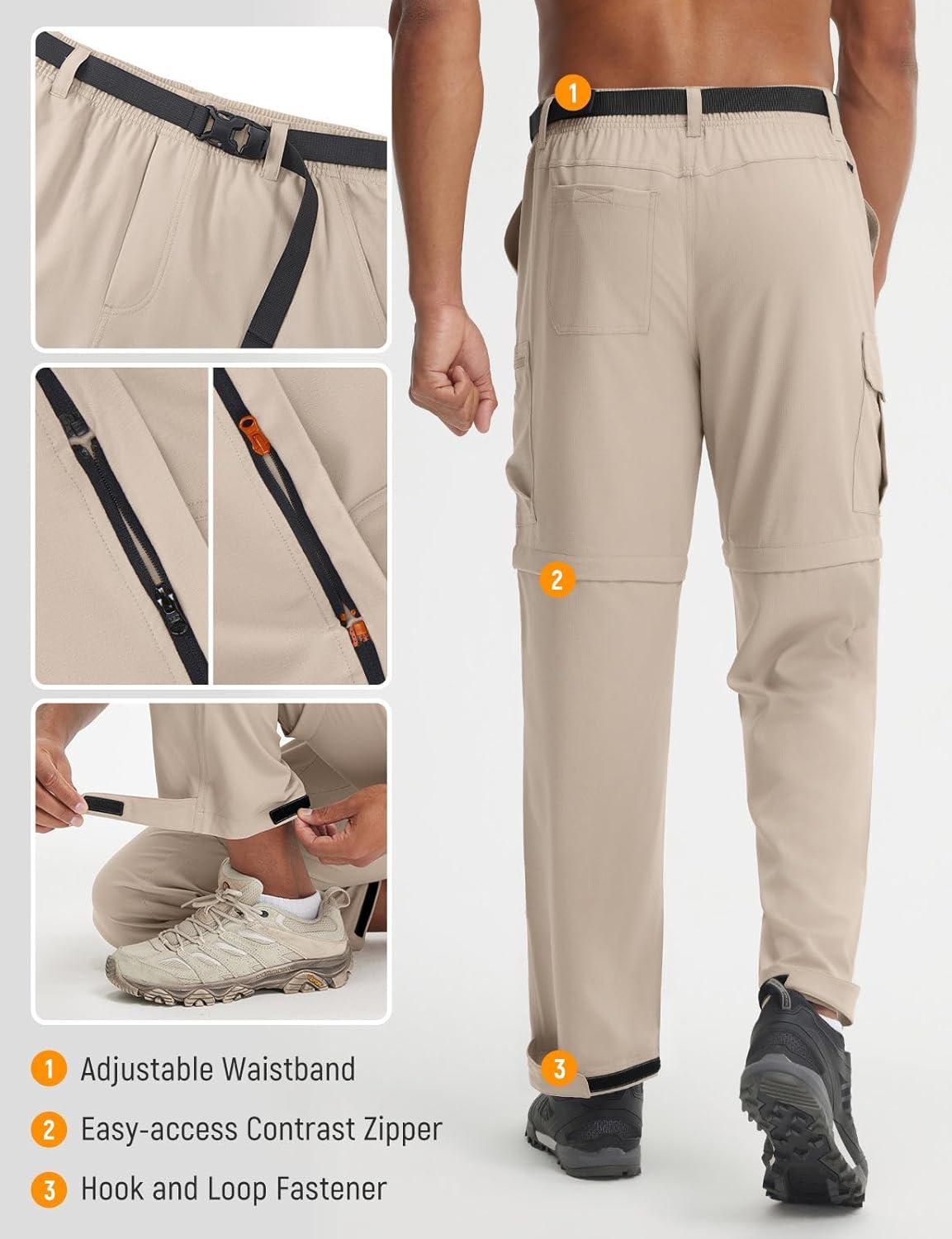 imagebaleaf Mens Convertible Hiking Pants Ripstop Lightweight Quick Dry Water Resistant Cargo Pants Zip Off Fishing OutdoorKhaki