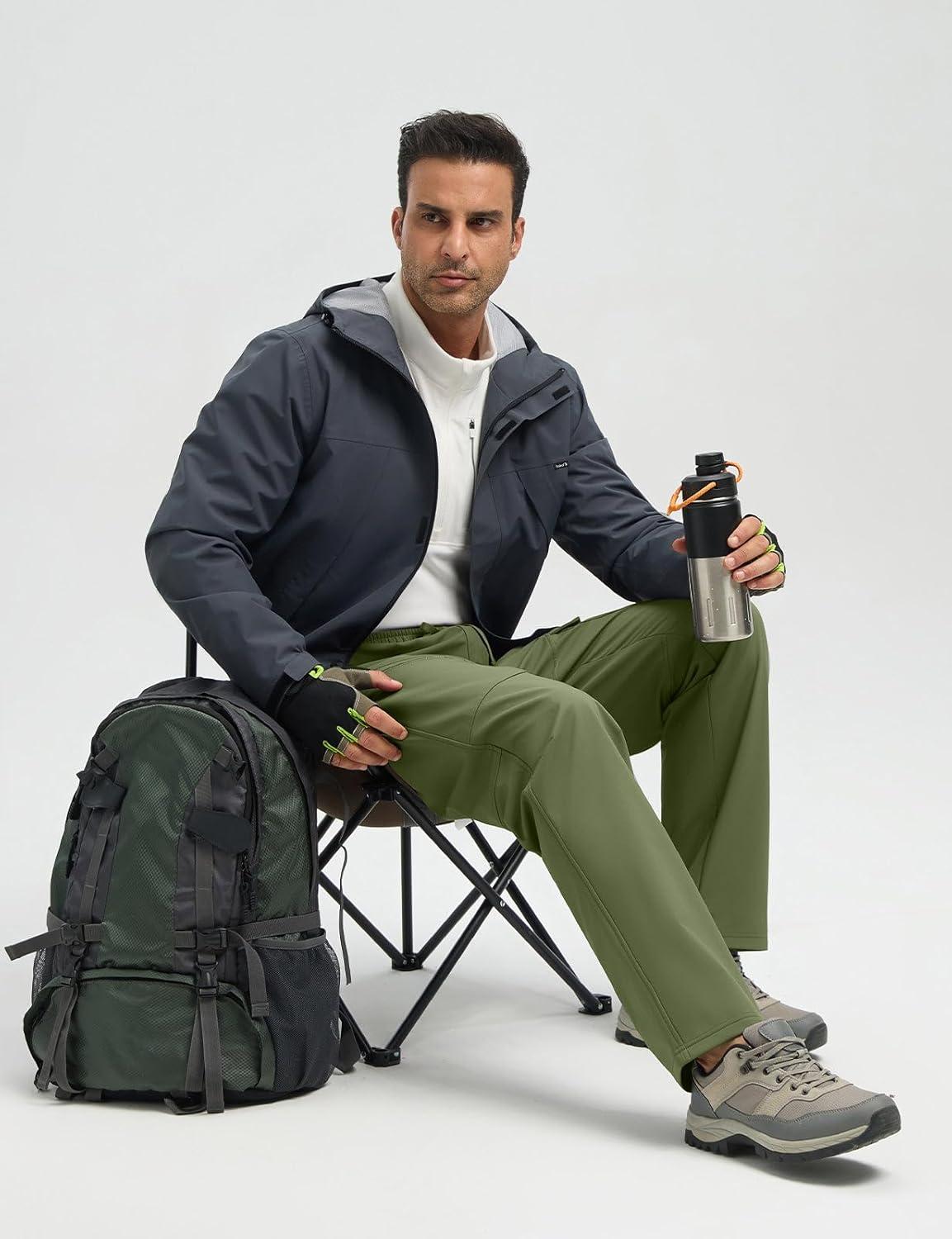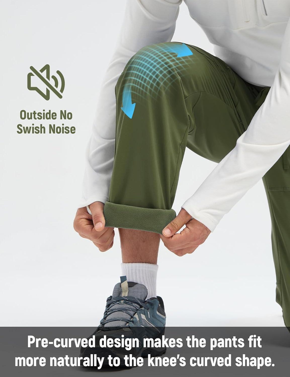 baleaf Men’s Fleece Lined Hiking Cargo Pants Softshell Water Resistant Snow Thermal Pants Winter Insulate with Zipper Pocket(Army Green)