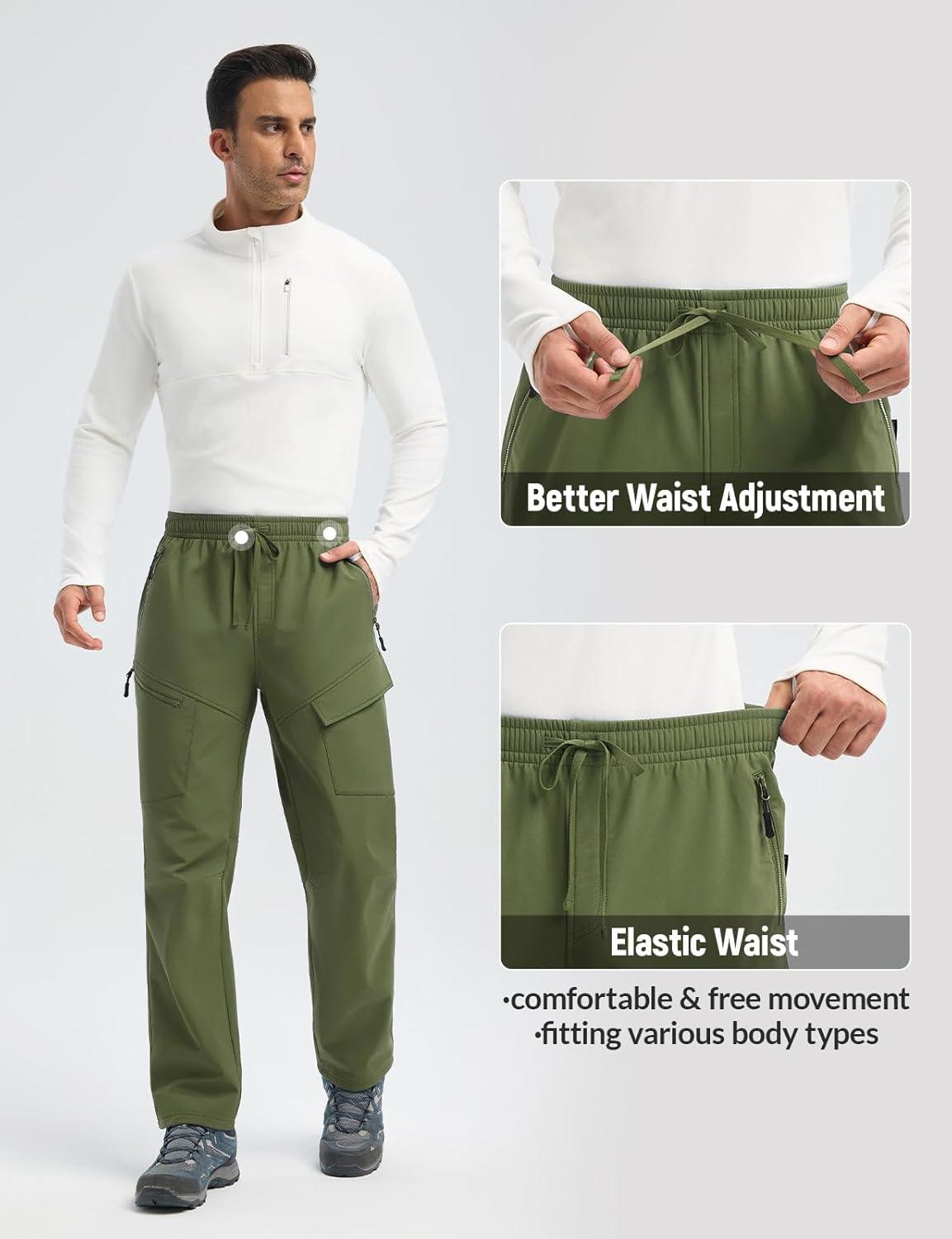 imagebaleaf Mens Fleece Lined Hiking Cargo Pants Softshell Water Resistant Snow Thermal Pants Winter Insulate with Zipper PocketArmy Green