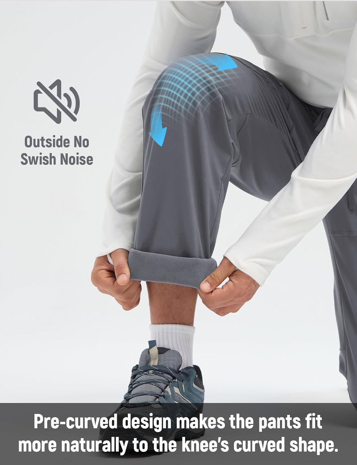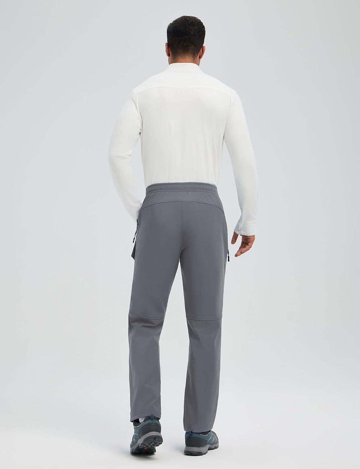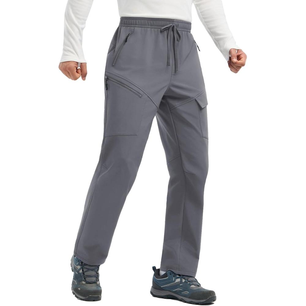 imagebaleaf Mens Fleece Lined Hiking Cargo Pants Softshell Water Resistant Snow Thermal Pants Winter Insulate with Zipper PocketDark Gray