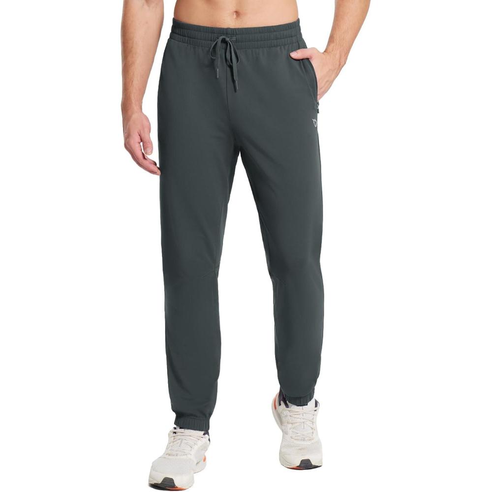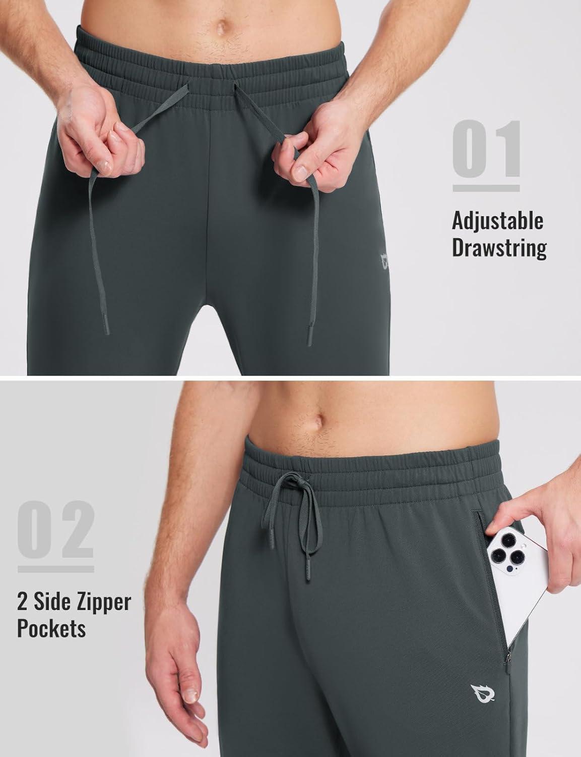 baleaf Men’s Fleece Lined Joggers Winter Athletic Sweatpants Thermal Hiking Workout Running Pants with Zipper Pockets(Dark Gray)