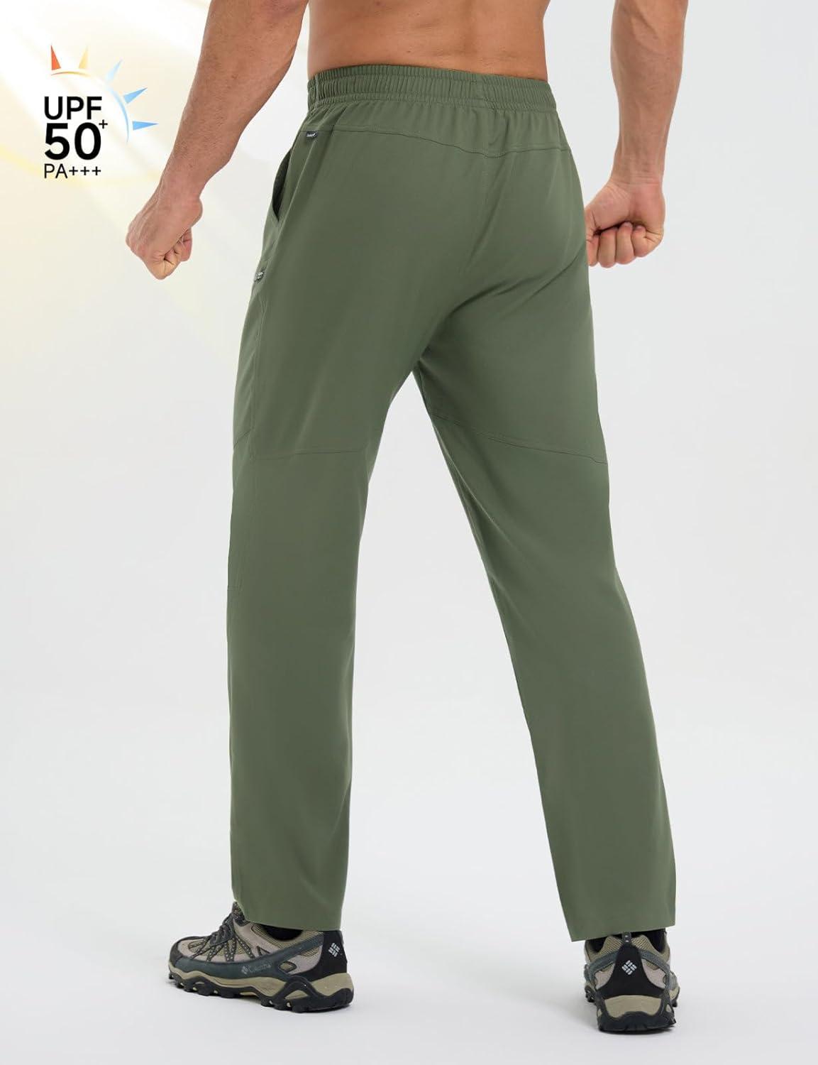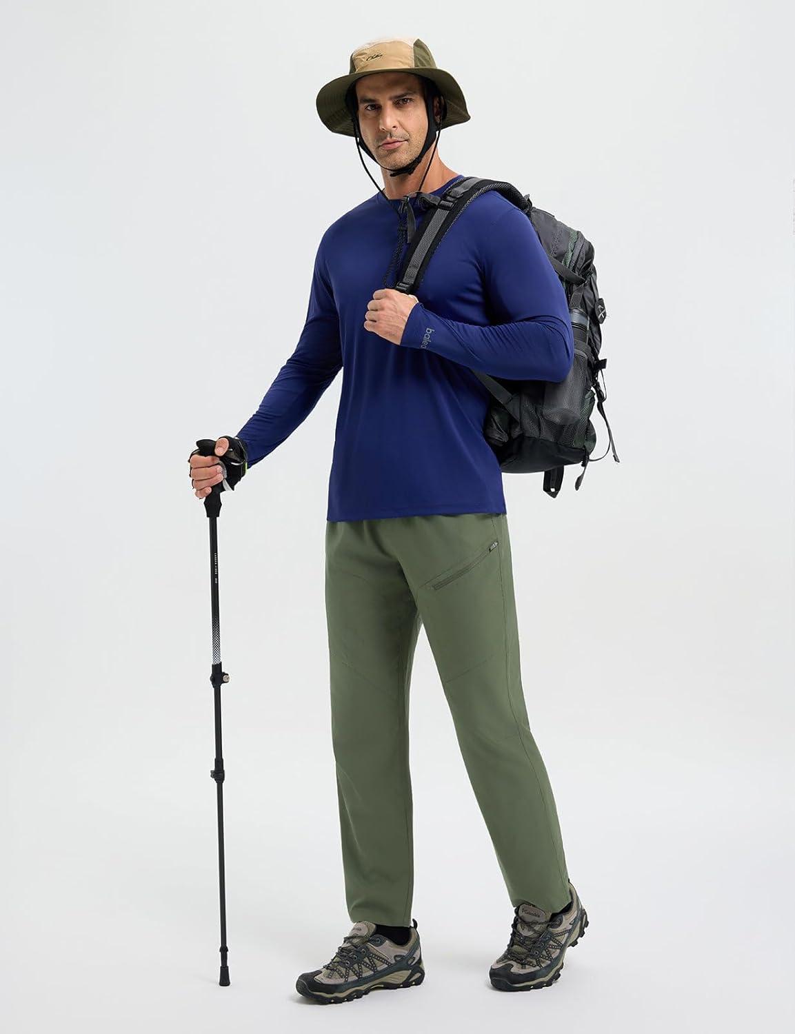 baleaf Men's Hiking Pants Ripstop Lightweight Cargo Waterproof Travel Pants Quick Dry with Zip Pockets UPF 50+ Work(Army Green)