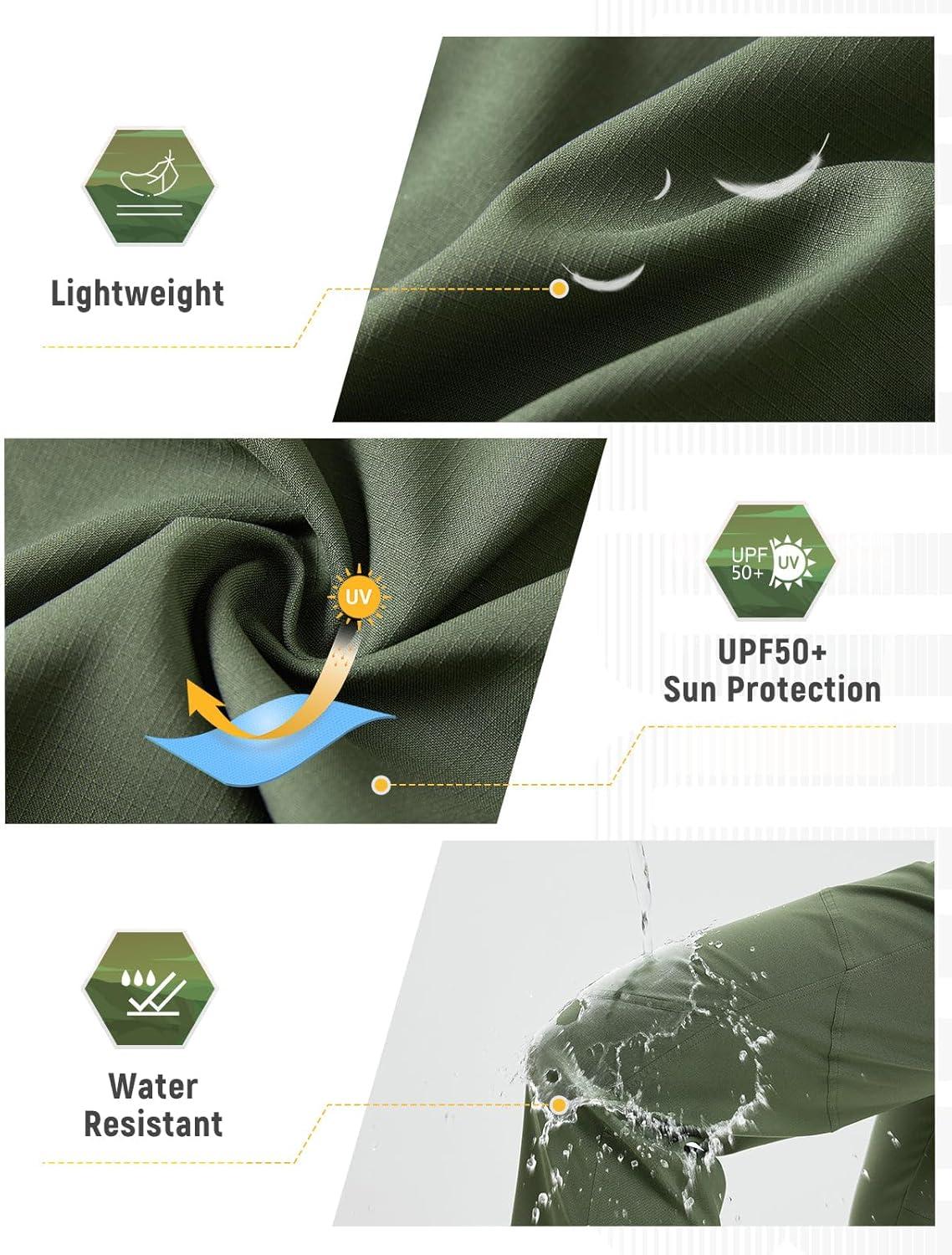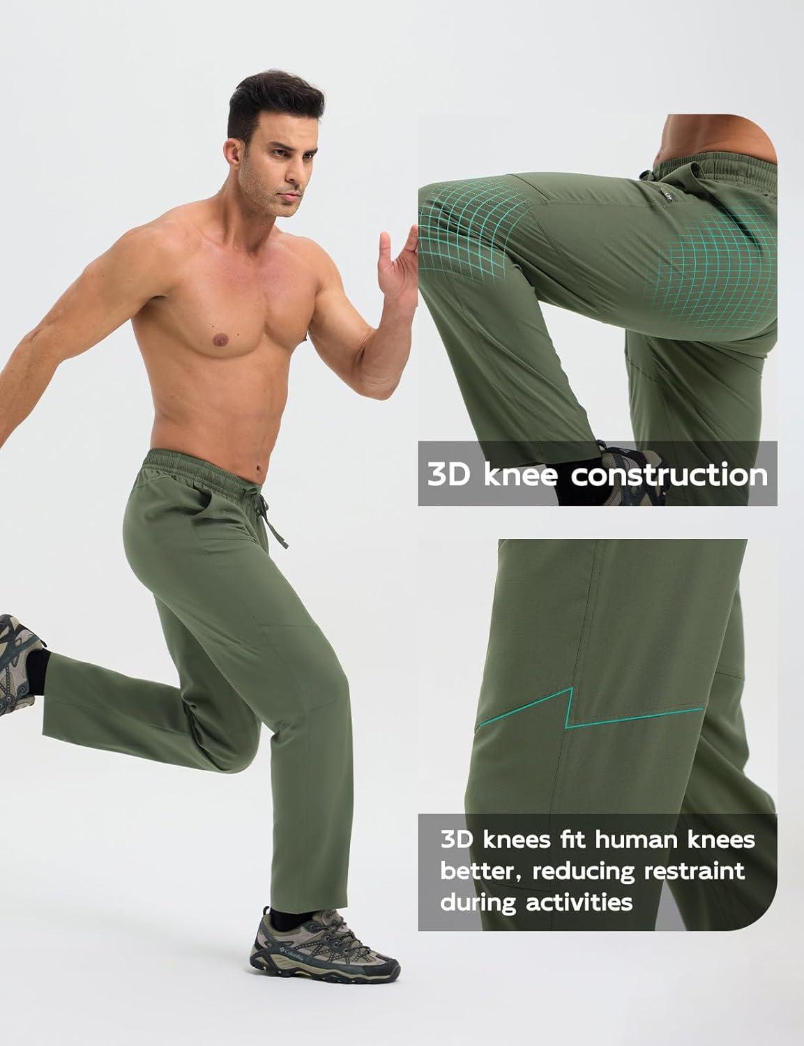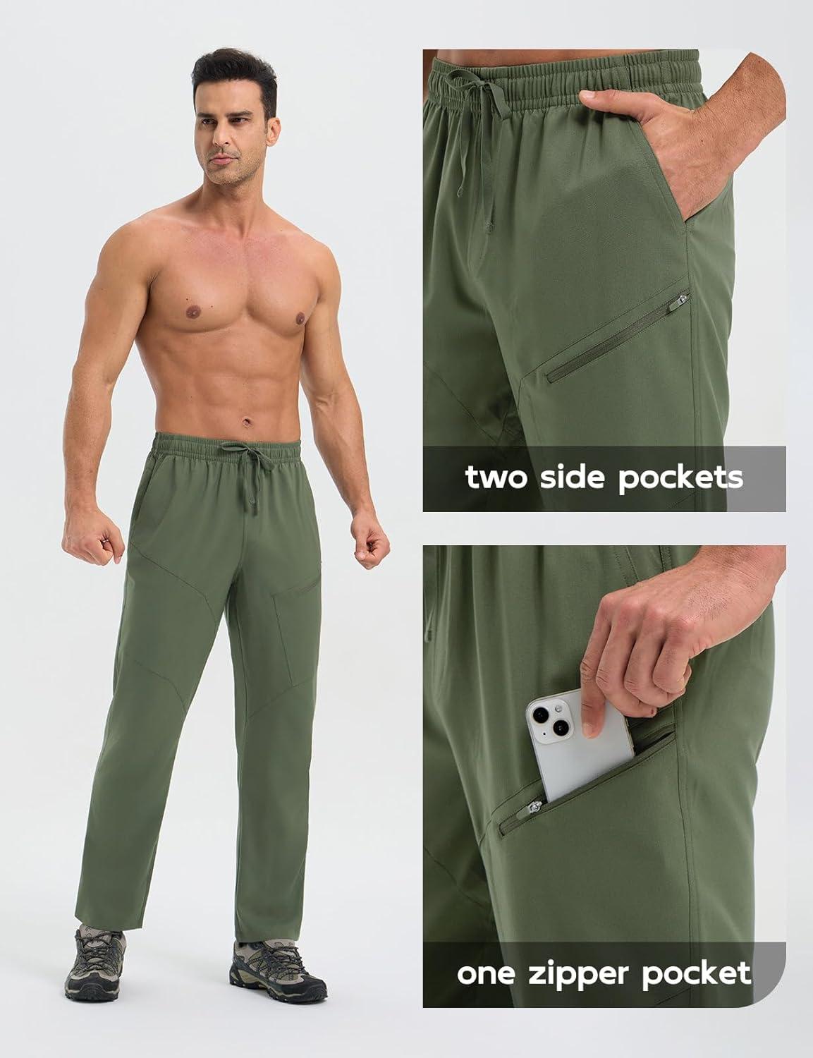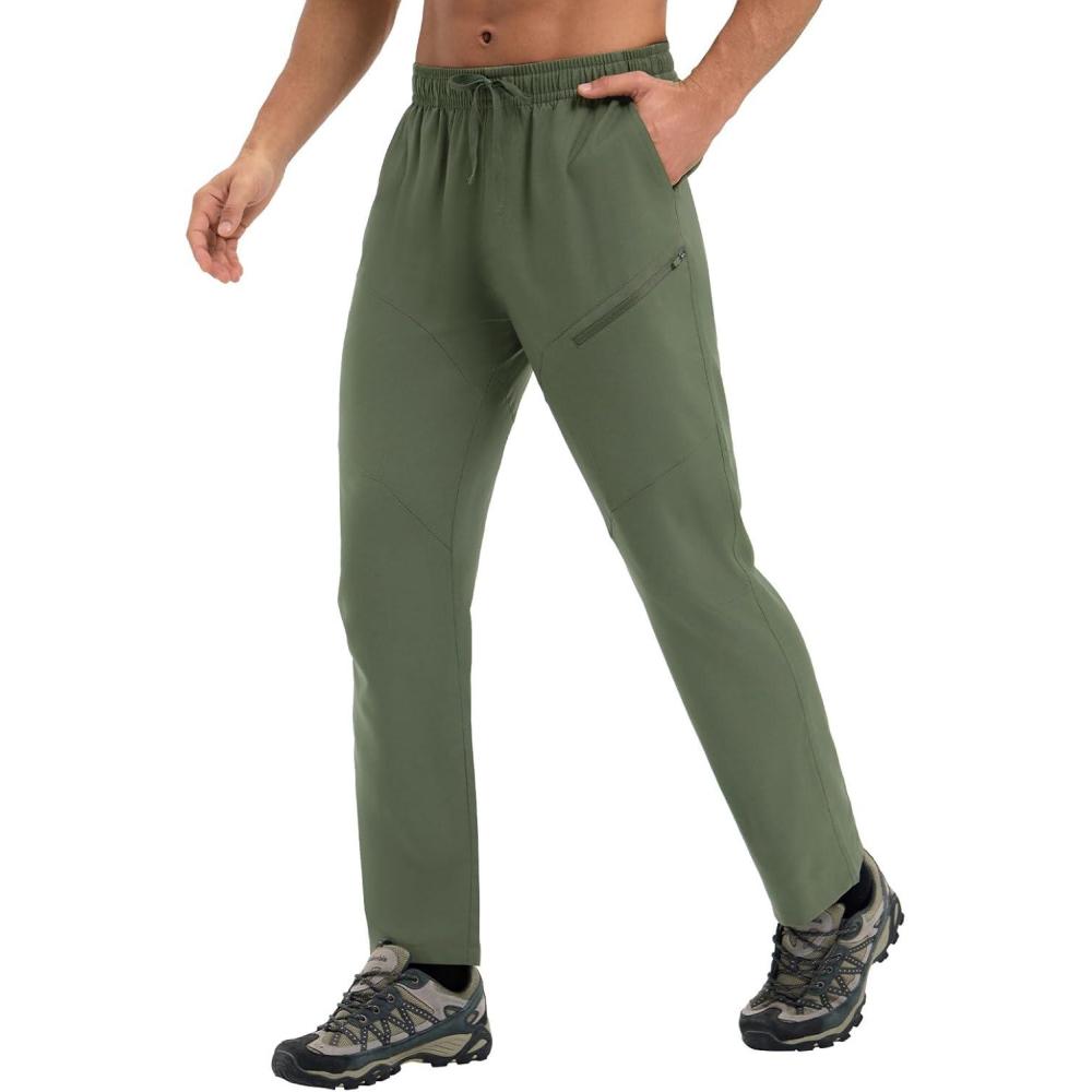 imagebaleaf Mens Hiking Pants Ripstop Lightweight Cargo Waterproof Travel Pants Quick Dry with Zip Pockets UPF 50 WorkArmy Green