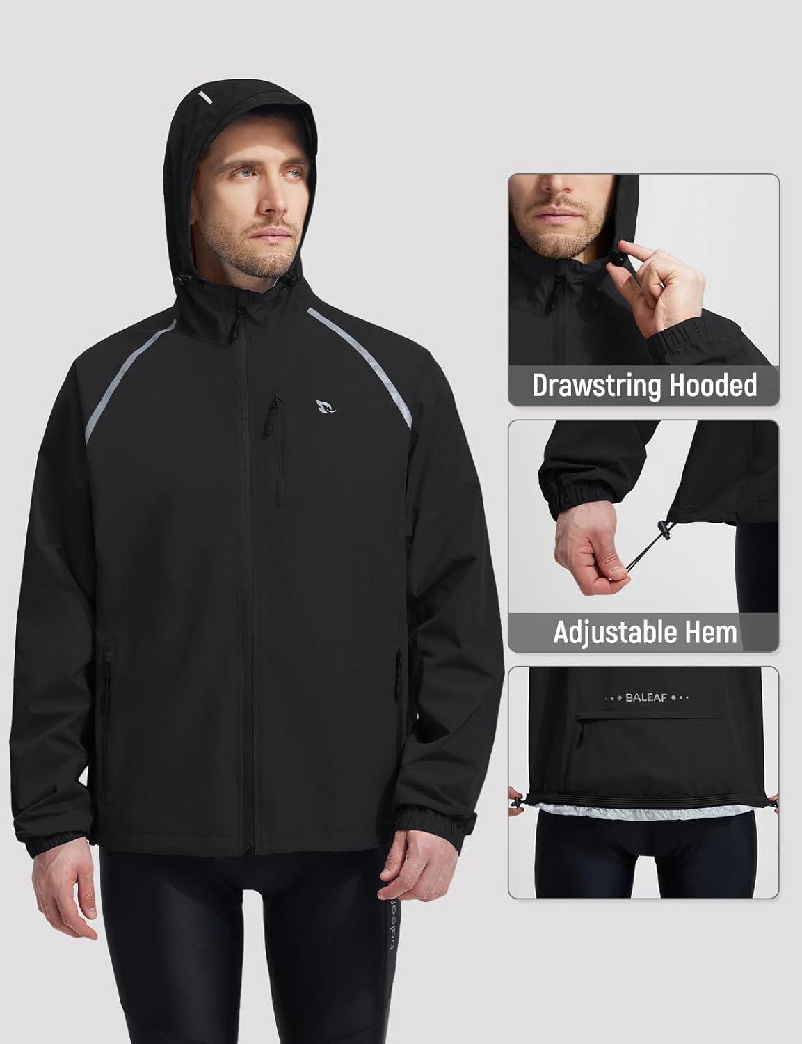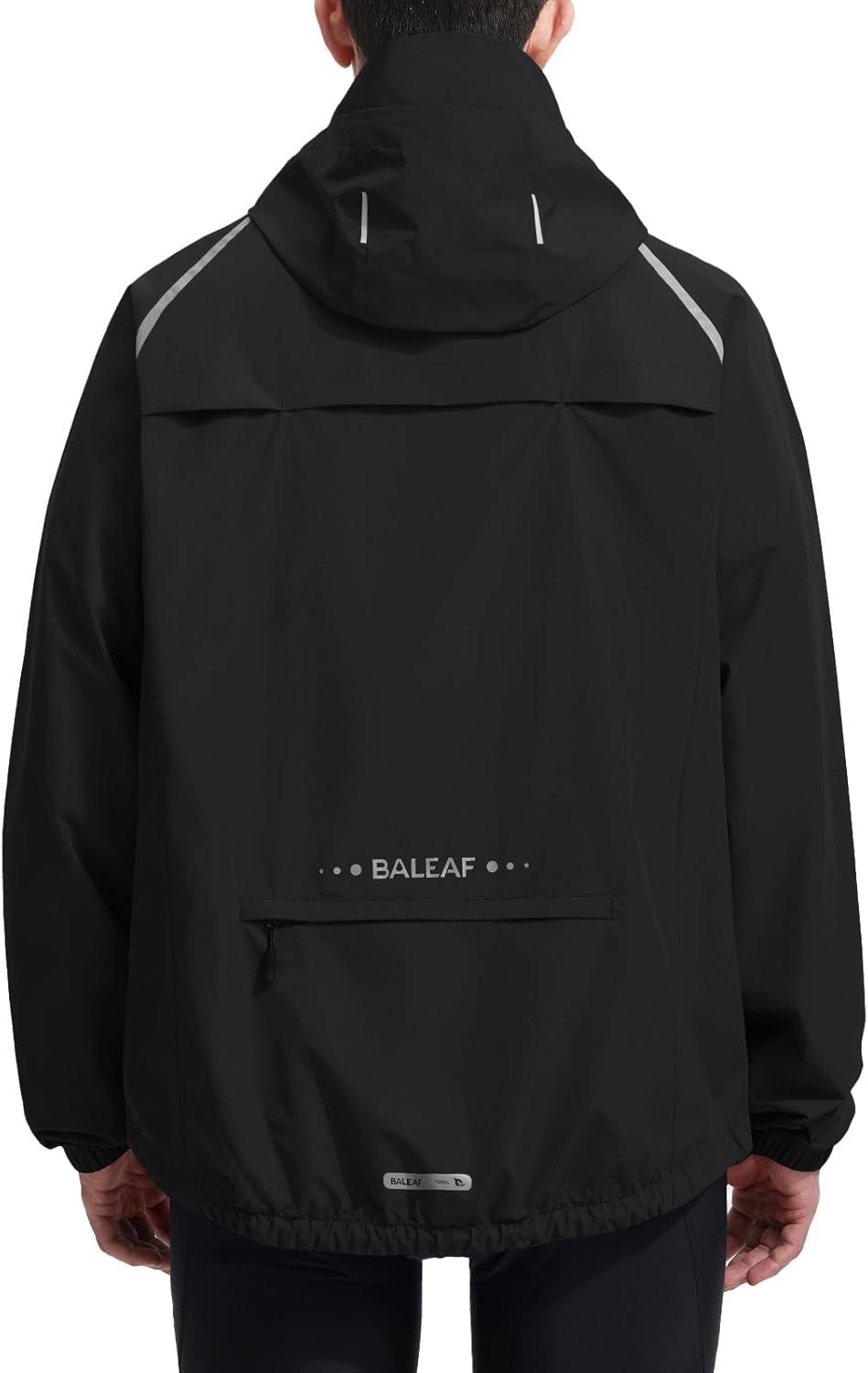 baleaf Men's Rain Jacket Waterproof Windbreaker Raincoat Running Cycling Hiking Gear Hood Lightweight Reflective Packable(C-black)
