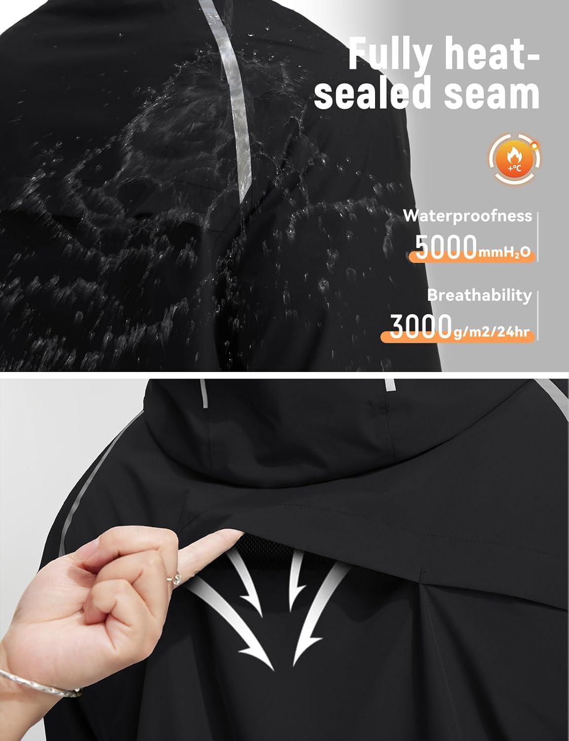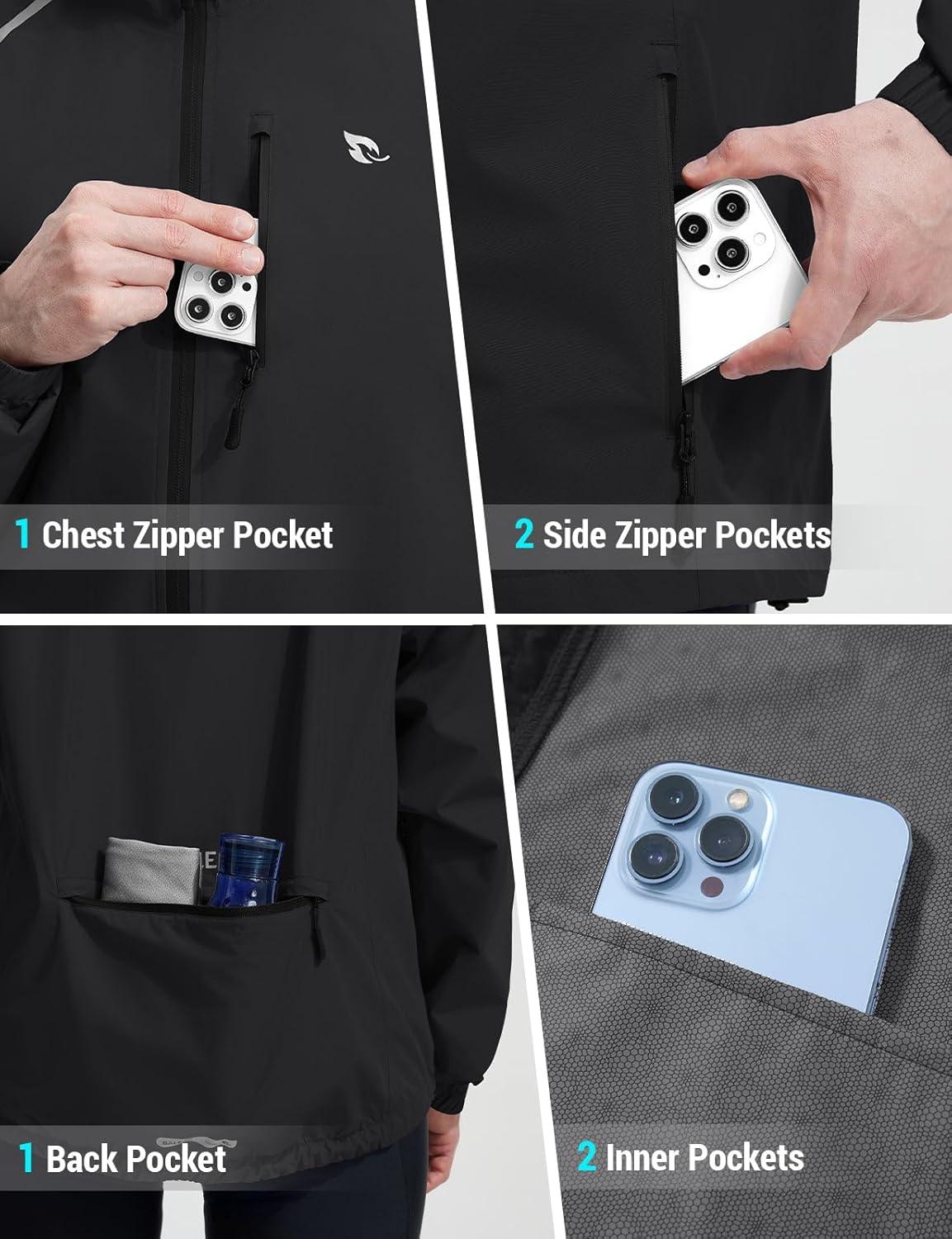 imagebaleaf Mens Rain Jacket Waterproof Windbreaker Raincoat Running Cycling Hiking Gear Hood Lightweight Reflective PackableCblack