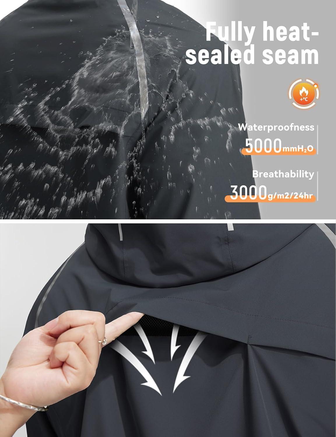 imagebaleaf Mens Rain Jacket Waterproof Windbreaker Raincoat Running Cycling Hiking Gear Hood Lightweight Reflective PackableCblack