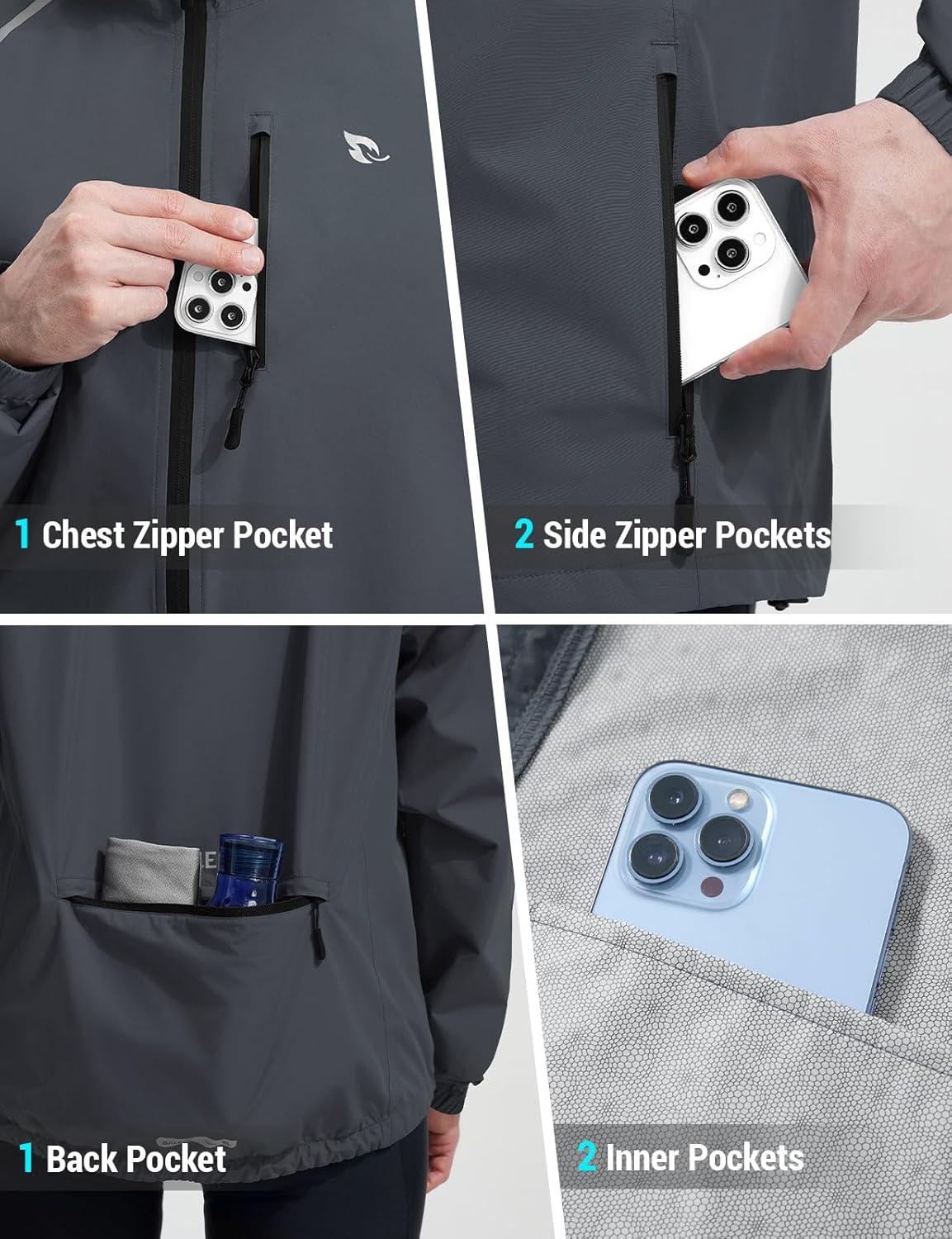 baleaf Men's Rain Jacket Waterproof Windbreaker Raincoat Running Cycling Hiking Gear Hood Lightweight Reflective Packable(C-dark Gray)
