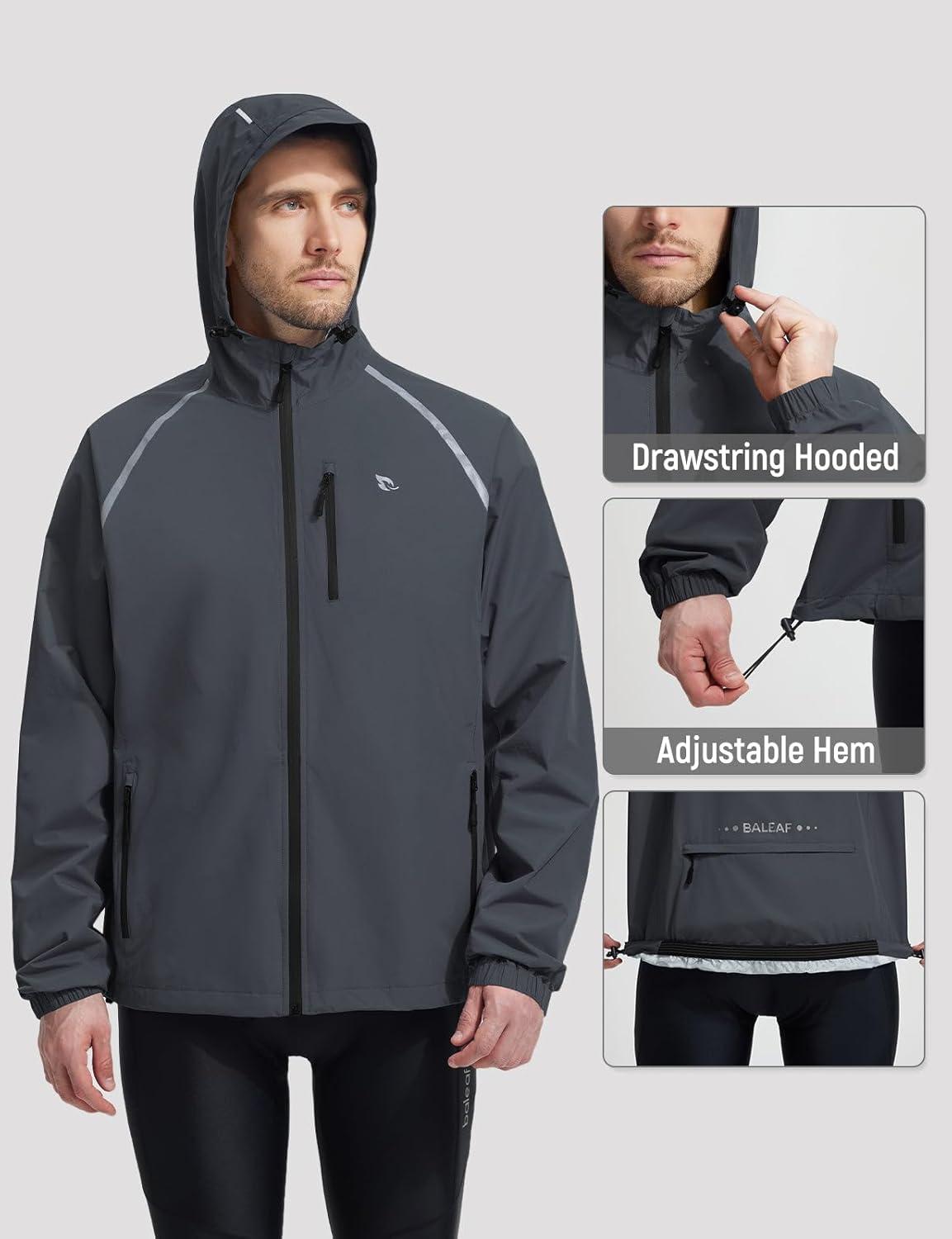 baleaf Men’s Rain Jacket Waterproof Windbreaker Raincoat Running Cycling Hiking Gear Hood Lightweight Reflective Packable(C-dark Gray)