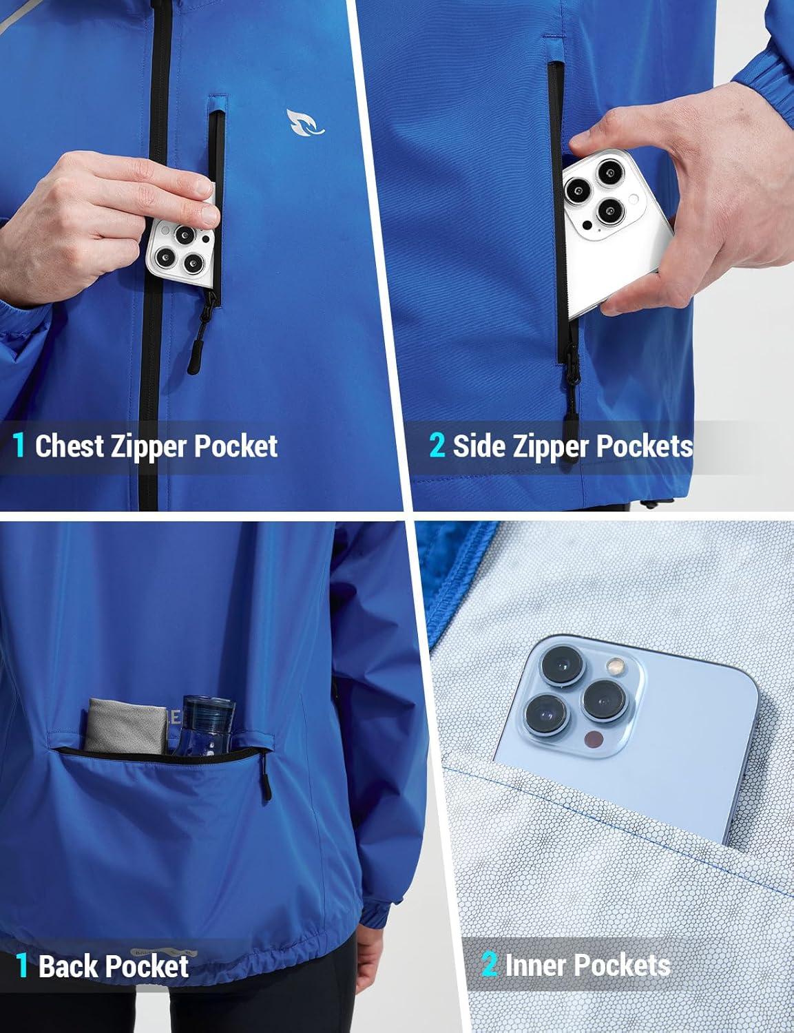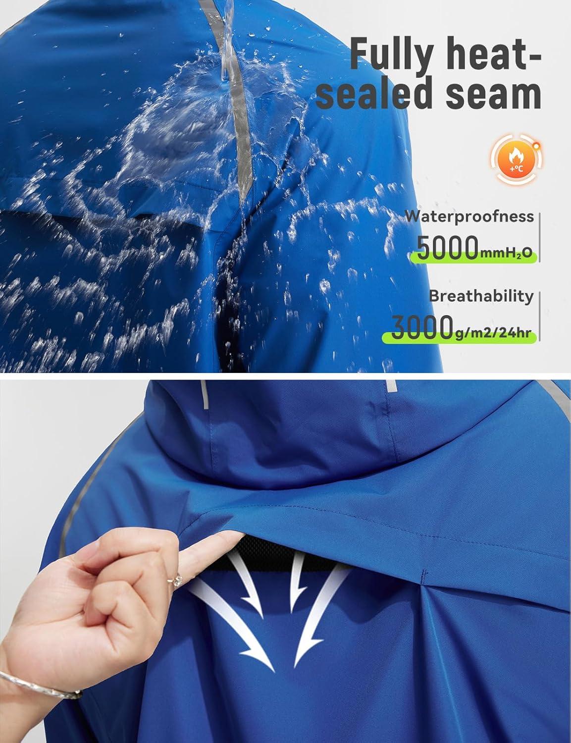 imagebaleaf Mens Rain Jacket Waterproof Windbreaker Raincoat Running Cycling Hiking Gear Hood Lightweight Reflective PackableCroyal Blue