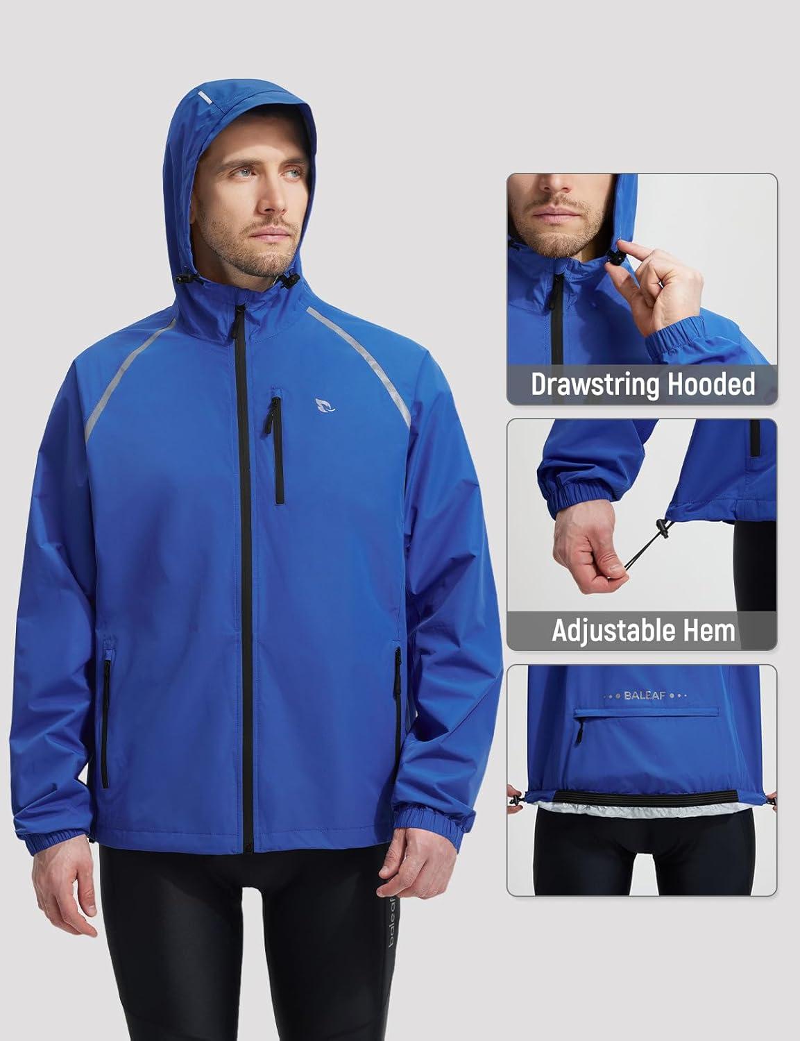 baleaf Men’s Rain Jacket Waterproof Windbreaker Raincoat Running Cycling Hiking Gear Hood Lightweight Reflective Packable(C-royal Blue)