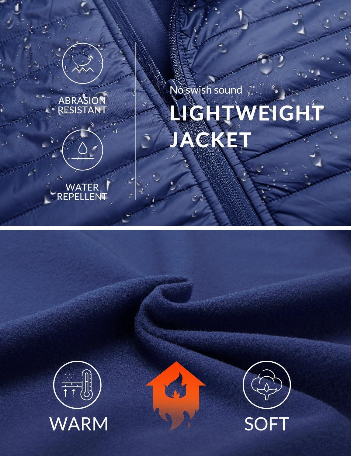 imagebaleaf Mens Running Jacket Lightweight Warm Up Puffer Jacket Hybrid Thermal Hiking Golf Insulated Coat Thumble HoleBlue