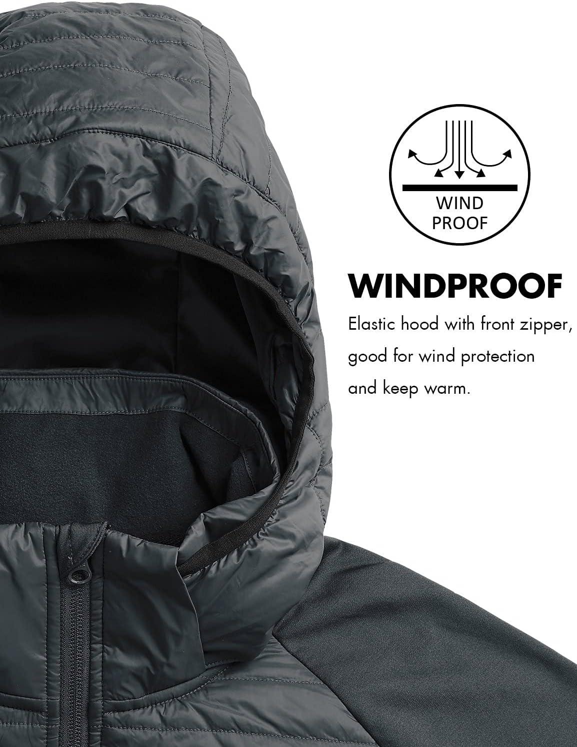 baleaf Men's Running Jacket Lightweight Warm Up Puffer Jacket Hybrid Thermal Hiking Golf Insulated Coat Thumble Hole(Dark Grey)