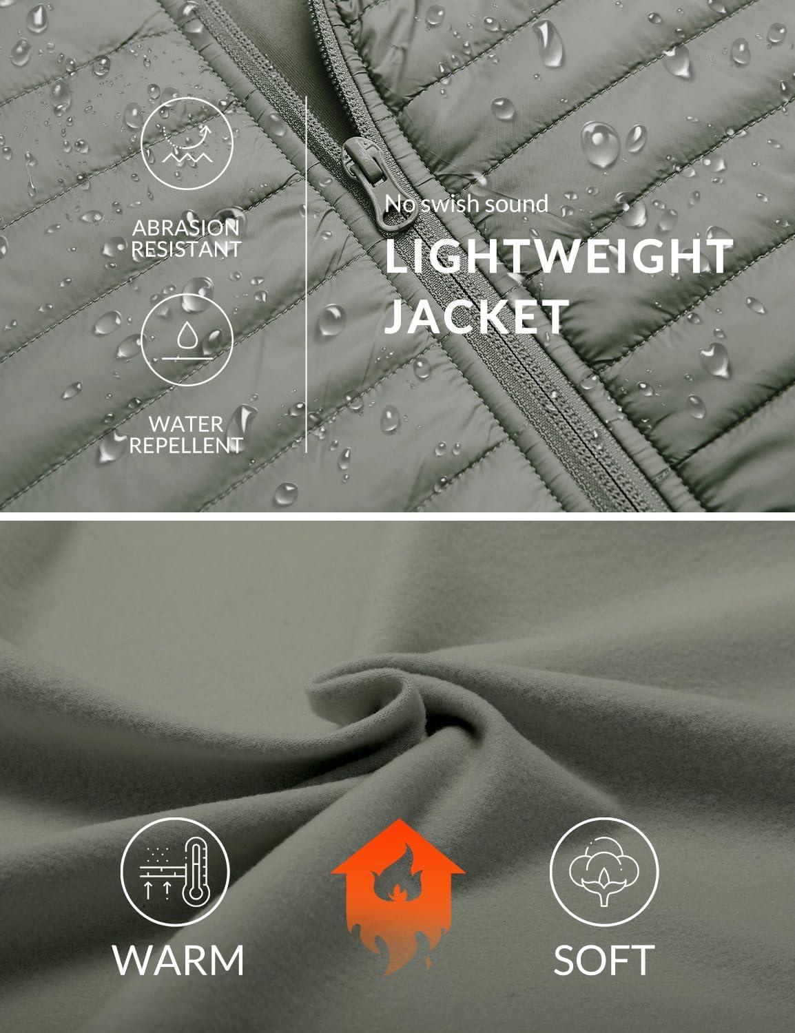 imagebaleaf Mens Running Jacket Lightweight Warm Up Puffer Jacket Hybrid Thermal Hiking Golf Insulated Coat Thumble HoleGlacier Gray
