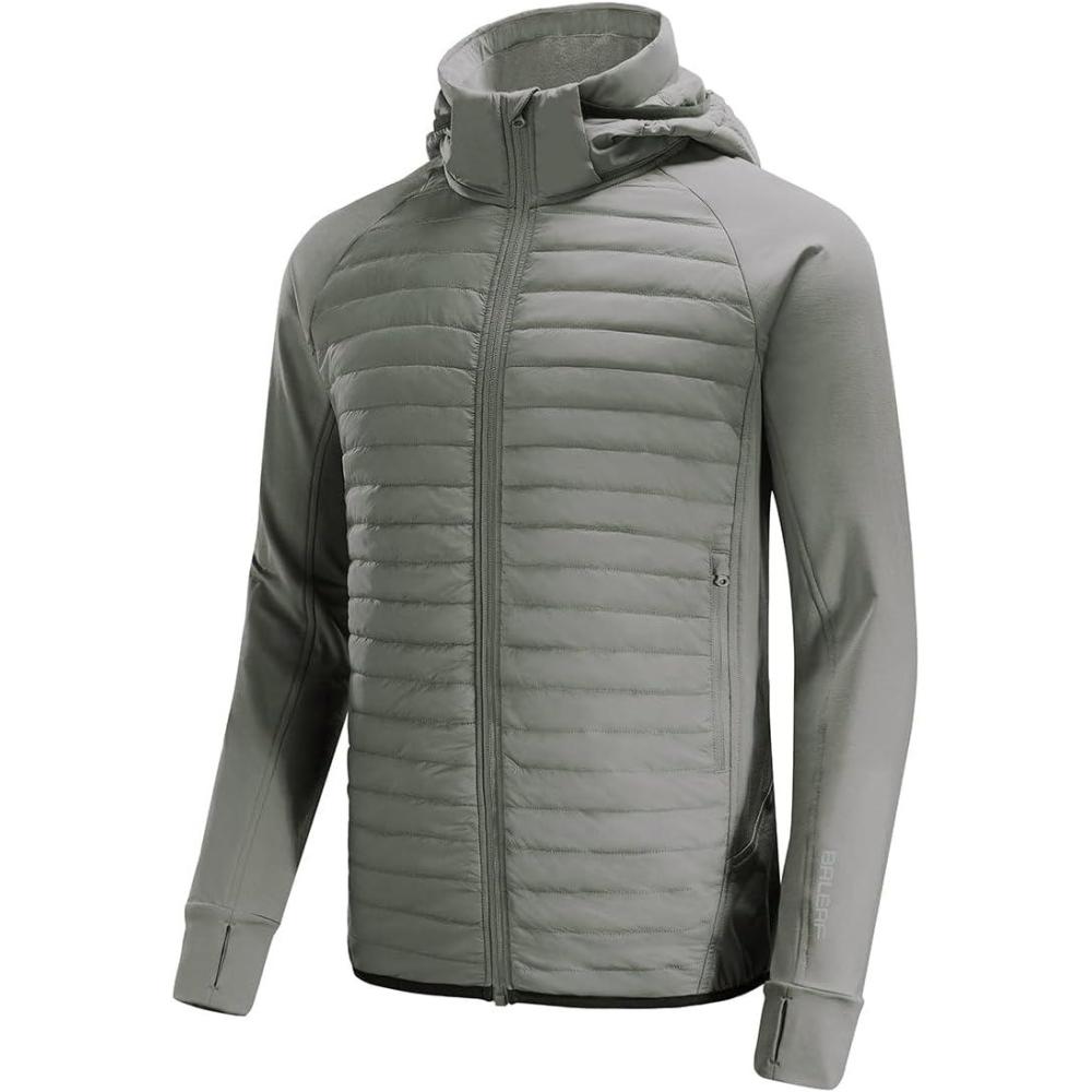 baleaf Men’s Running Jacket Lightweight Warm Up Puffer Jacket Hybrid Thermal Hiking Golf Insulated Coat Thumble Hole(Glacier Gray)