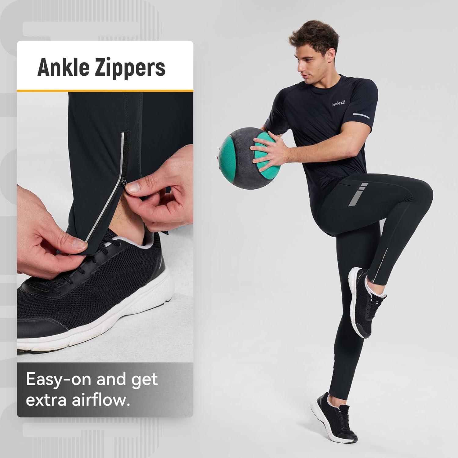 Effortless Wearing: The zippers at ankles not only make it easy to put on and take off the cycling tights, but also enhance ventilation and add a stylish touch. The reflective stripe on the legs ensures safety during running.