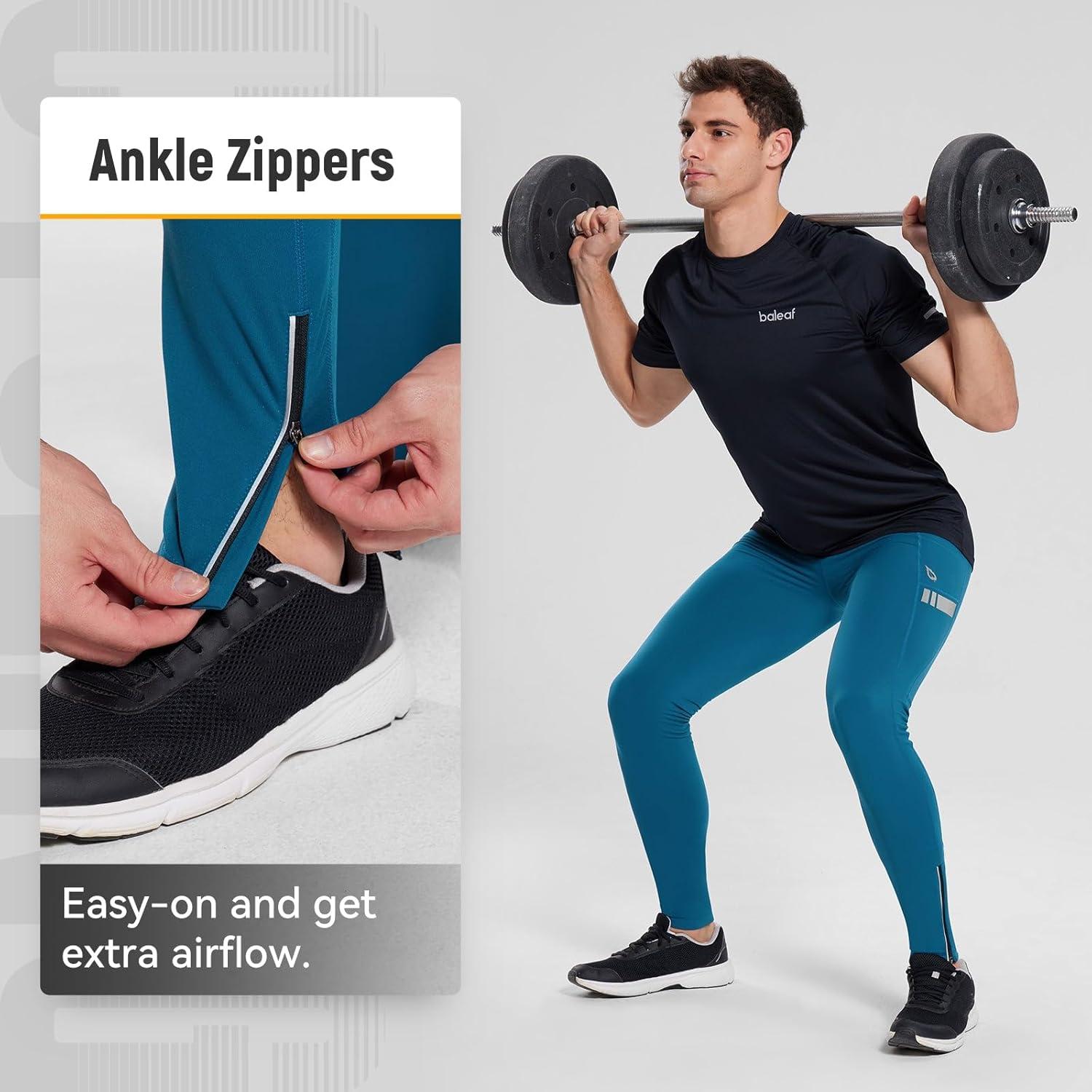 Effortless Wearing: The zippers at ankles not only make it easy to put on and take off the cycling tights, but also enhance ventilation and add a stylish touch. The reflective stripe on the legs ensures safety during running.