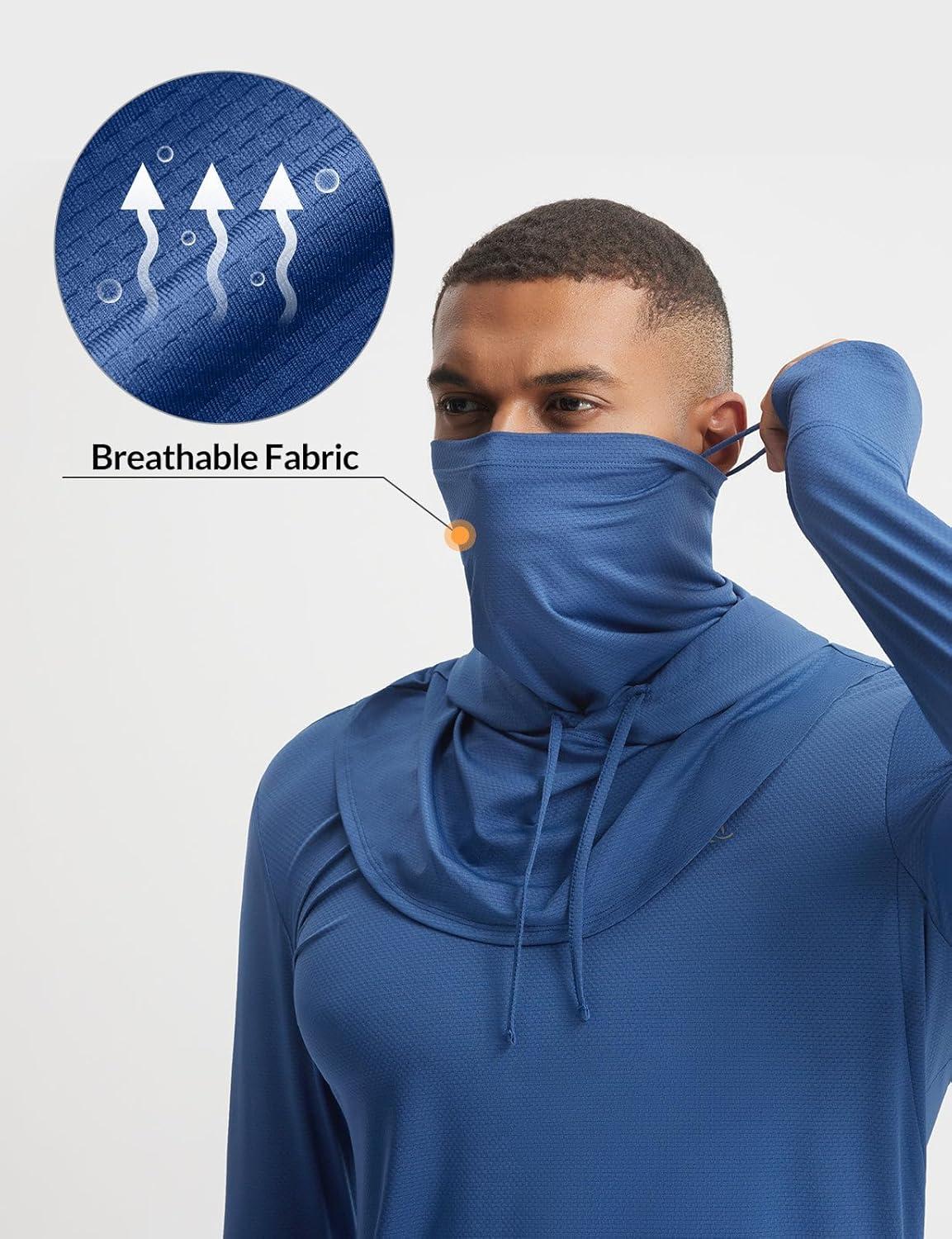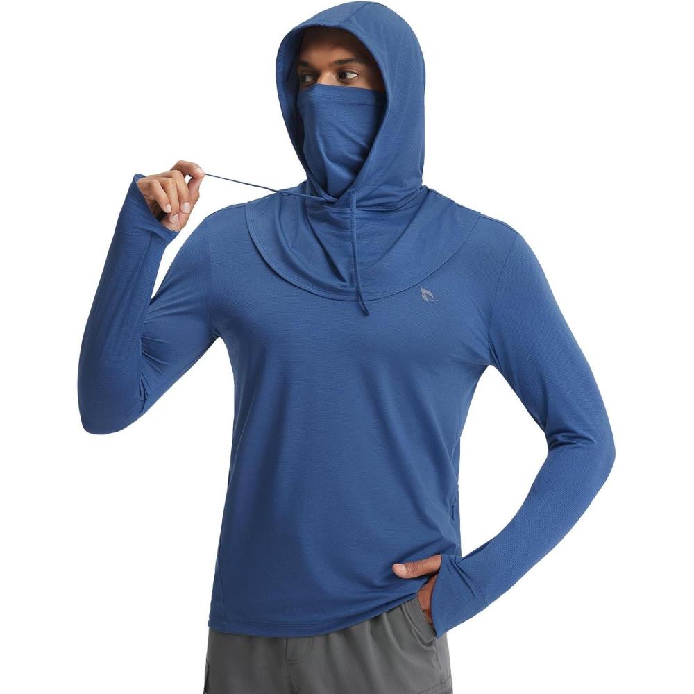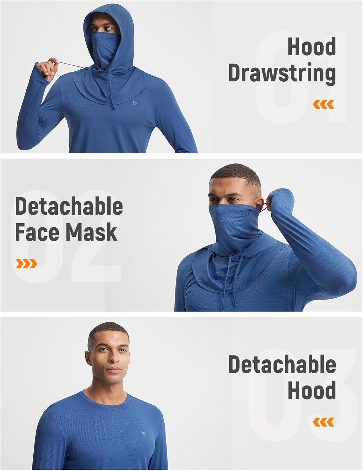 imagebaleaf Mens Sun Hoodies UPF 50 Separate Hood with Face Mask Long Sleeve Fishing Shirts UV Protection Rash GuardNavy Blue