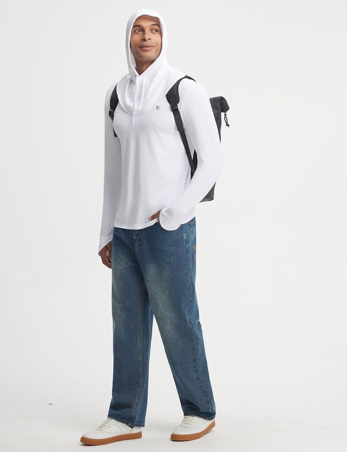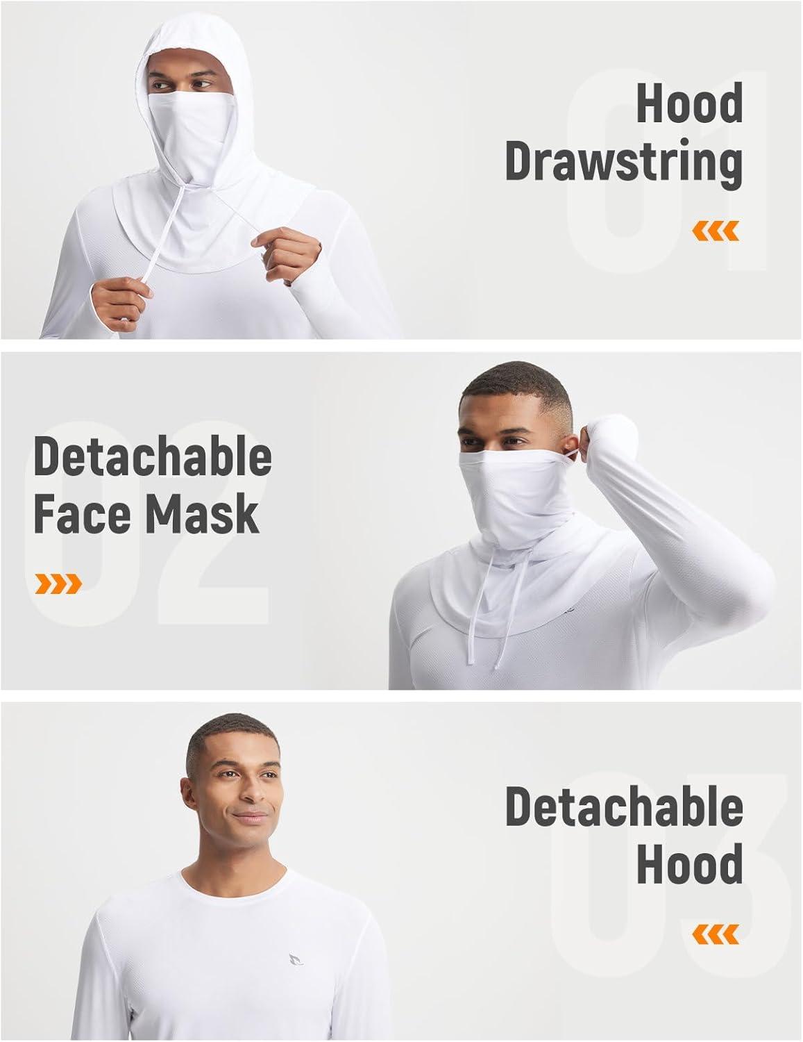 baleaf Men’s Sun Hoodies UPF 50+ Separate Hood with Face Mask Long Sleeve Fishing Shirts UV Protection Rash Guard(White)
