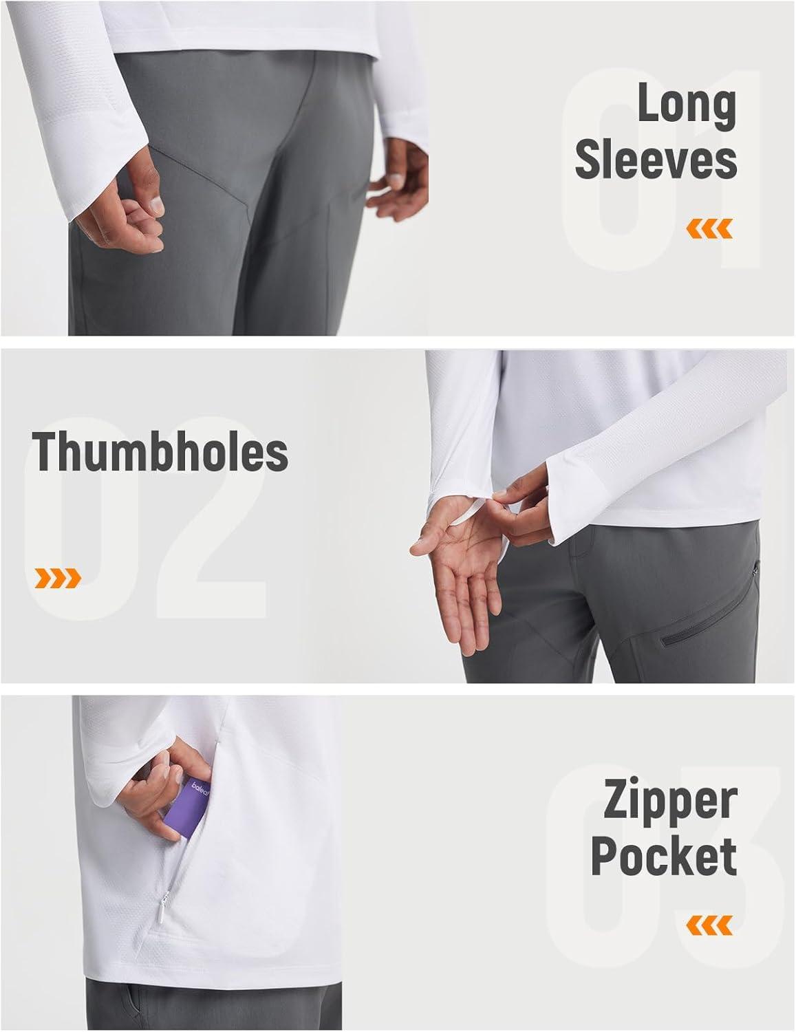 imagebaleaf Mens Long Sleeve Sun Shirts with Pocket 14 Zip Hiking Running Quick Dry Lightweight Rash Guard UV Outdoor ShirtBlack