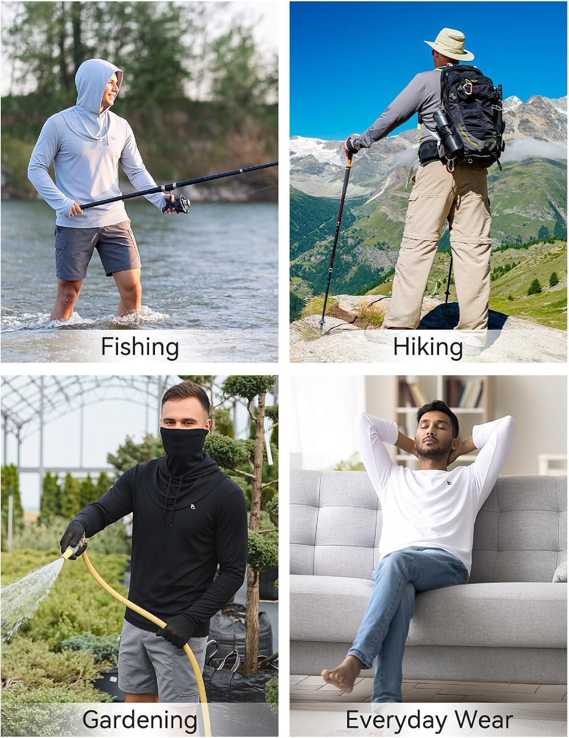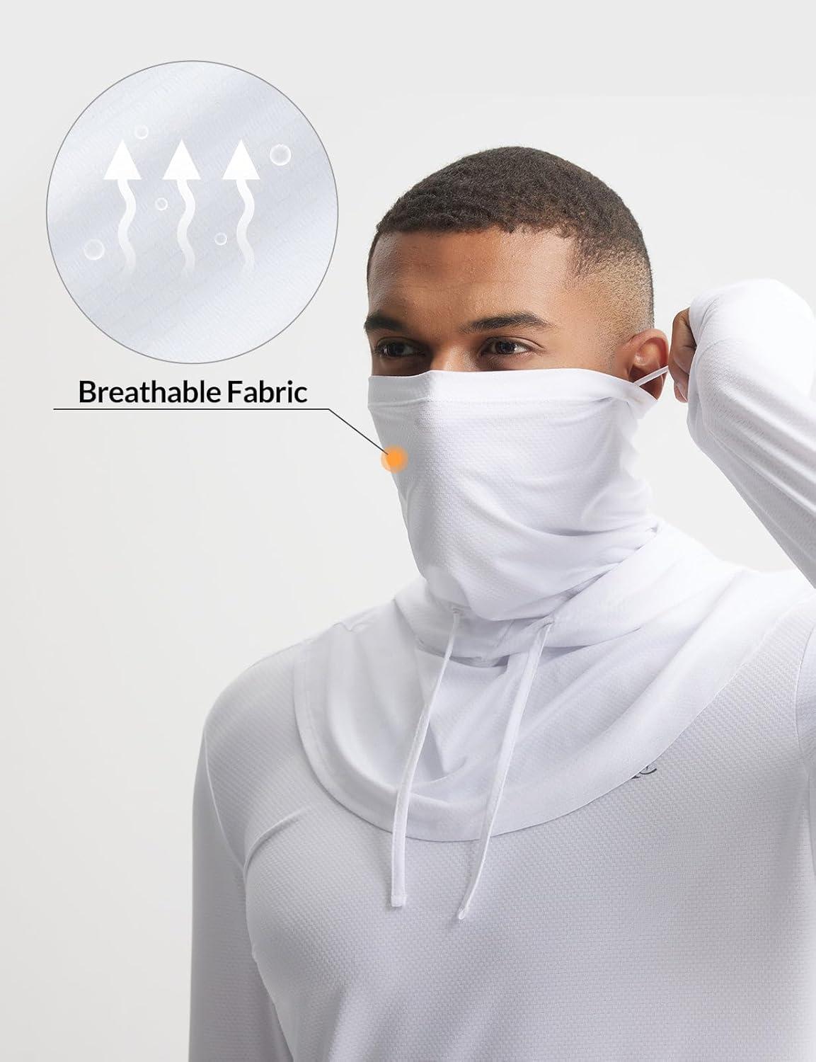 imagebaleaf Mens Sun Hoodies UPF 50 Separate Hood with Face Mask Long Sleeve Fishing Shirts UV Protection Rash GuardWhite