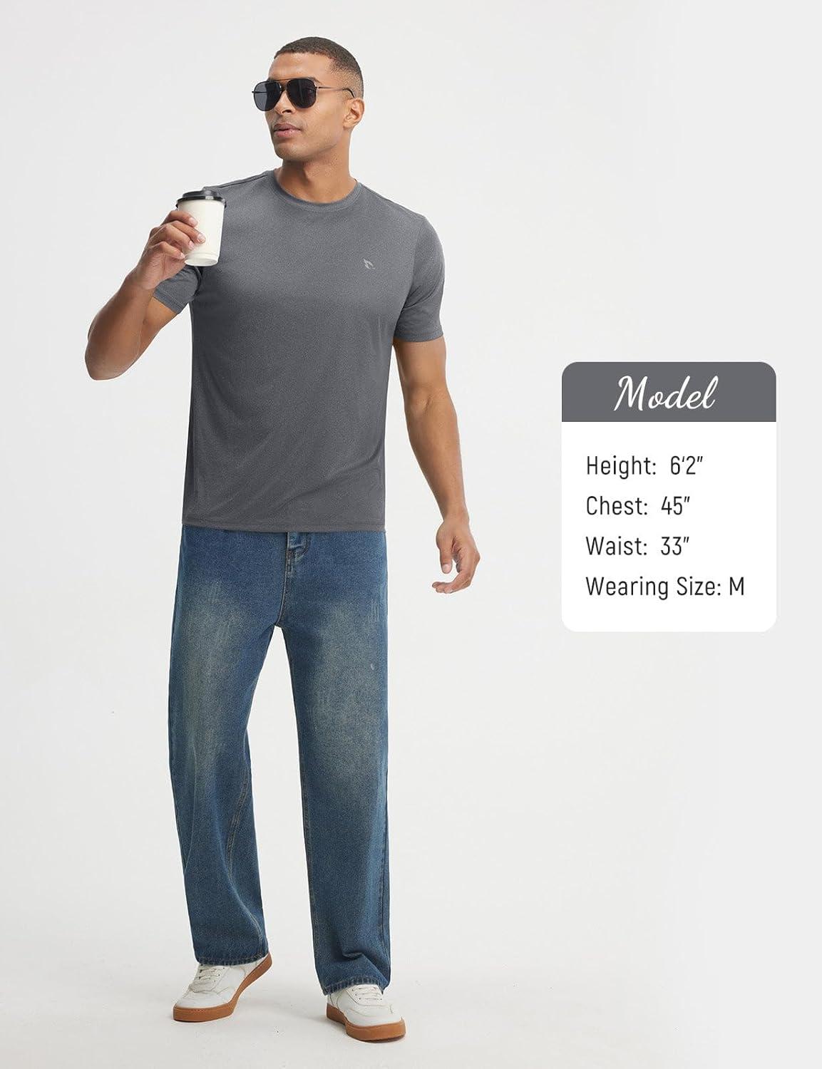 baleaf Men’s Sun Protection Shirts Short Sleeve T-Shirts Swim Rash Guard Hiking Running SPF UPF 50+ UV Lightweight(Heather Light Gray)