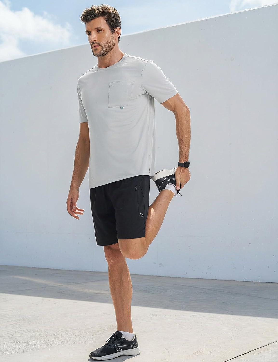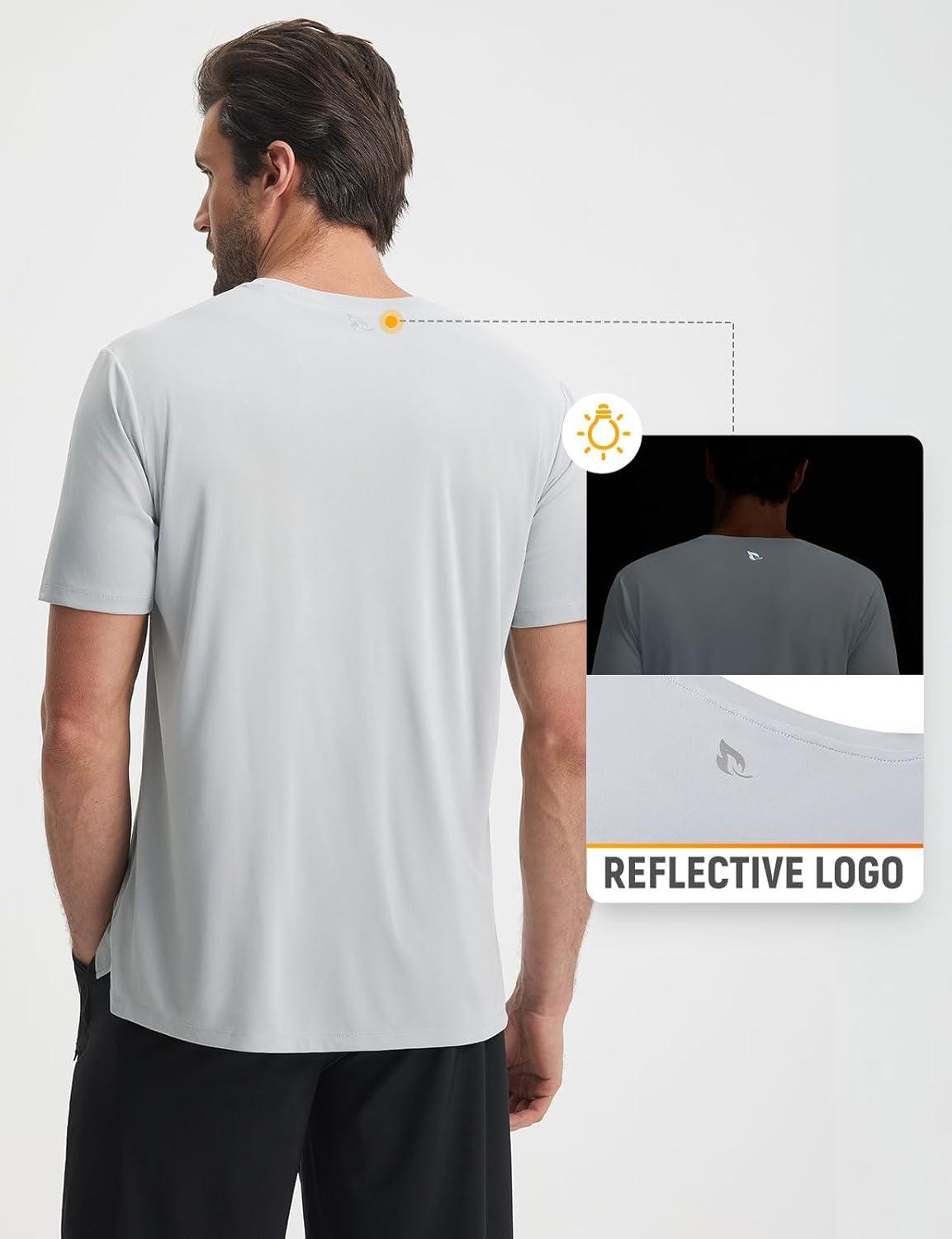 baleaf Men’s Sun Shirts with Pocket Short Sleeve T Shirts UPF 50+ UV SPF Lightweight Quick Dry Hiking Fishing Rash Guard(Light Gray)