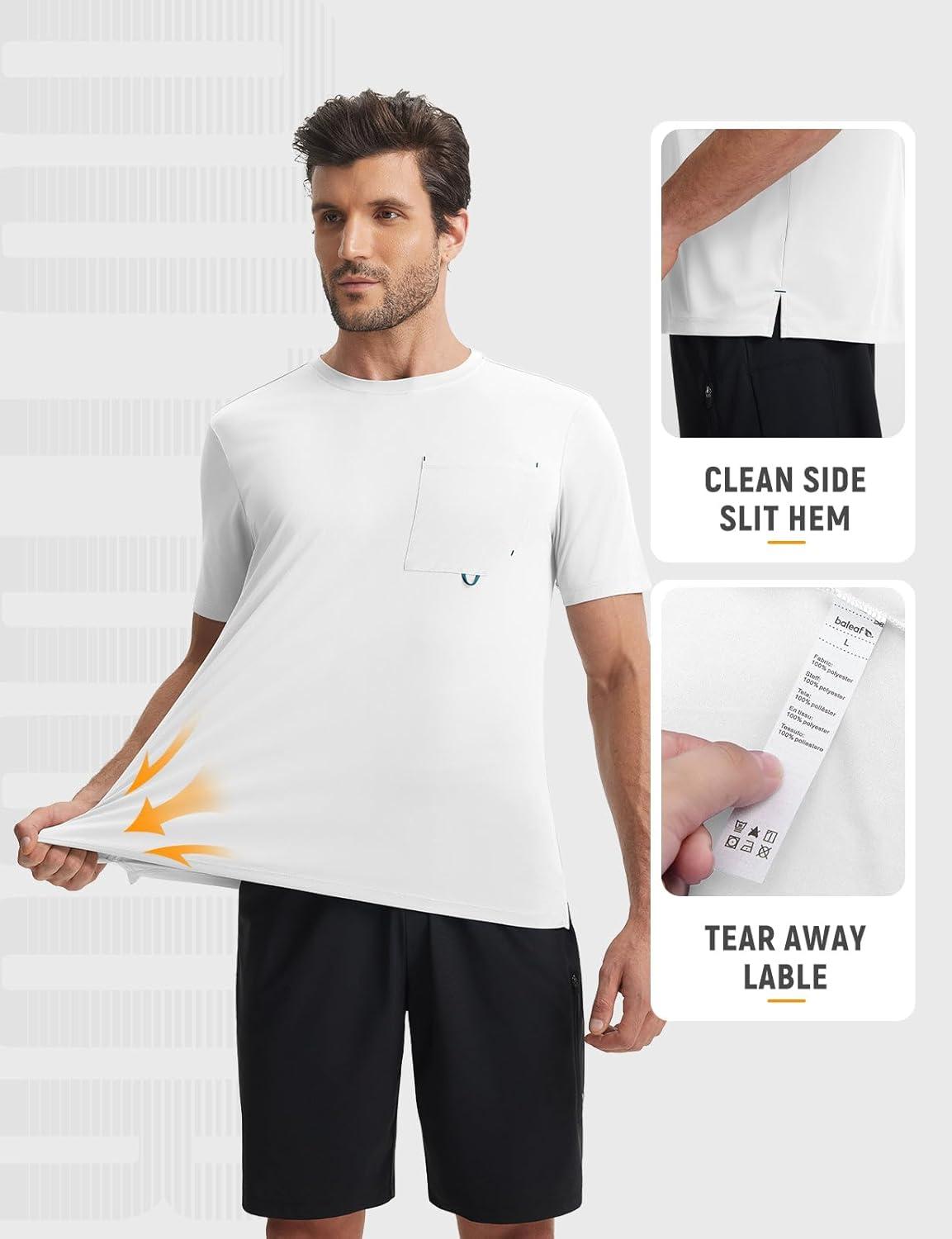 baleaf Men’s Sun Shirts with Pocket Short Sleeve T Shirts UPF 50+ UV SPF Lightweight Quick Dry Hiking Fishing Rash Guard(White)