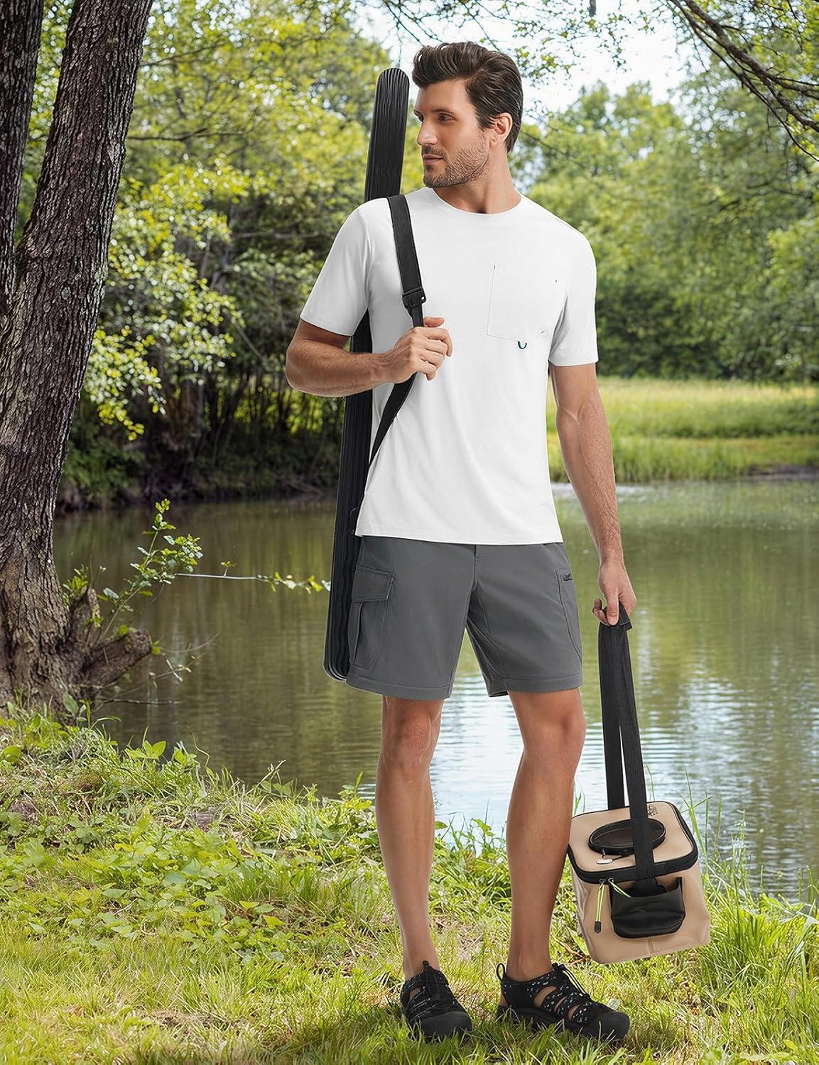 imagebaleaf Mens Sun Shirts with Pocket Short Sleeve T Shirts UPF 50 UV SPF Lightweight Quick Dry Hiking Fishing Rash GuardWhite