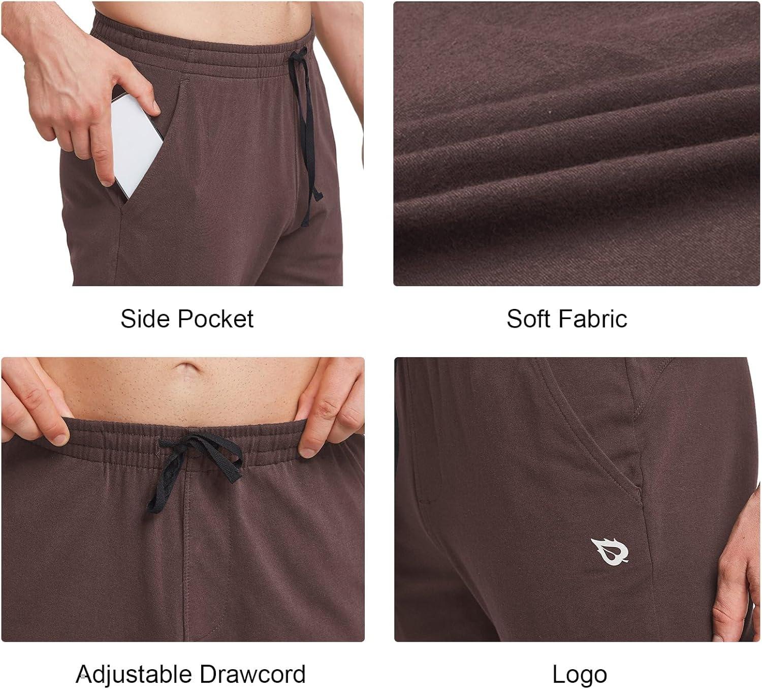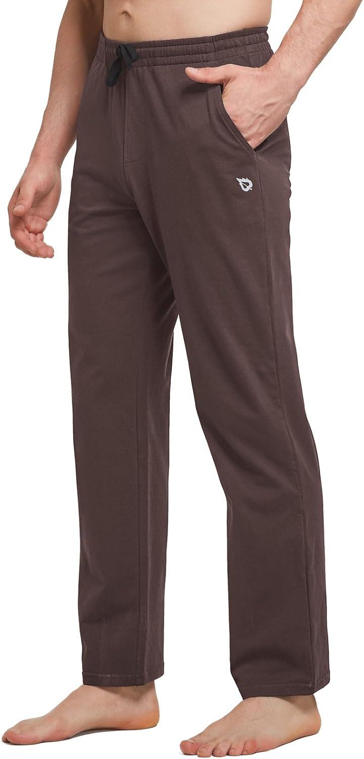 baleaf Men’s Sweatpants Yoga Lounge Cotton Pajama Pants Casual Open Bottom Straight Leg Stretchy Sweat Pants with Pockets(A-brown)
