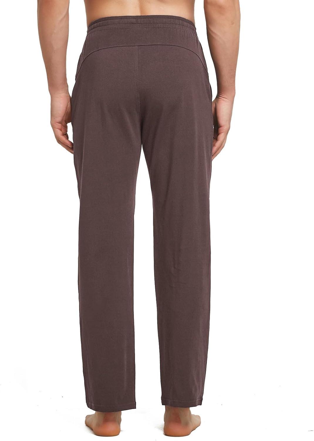 imagebaleaf Mens Sweatpants Yoga Lounge Cotton Pajama Pants Casual Open Bottom Straight Leg Stretchy Sweat Pants with PocketsAbrown