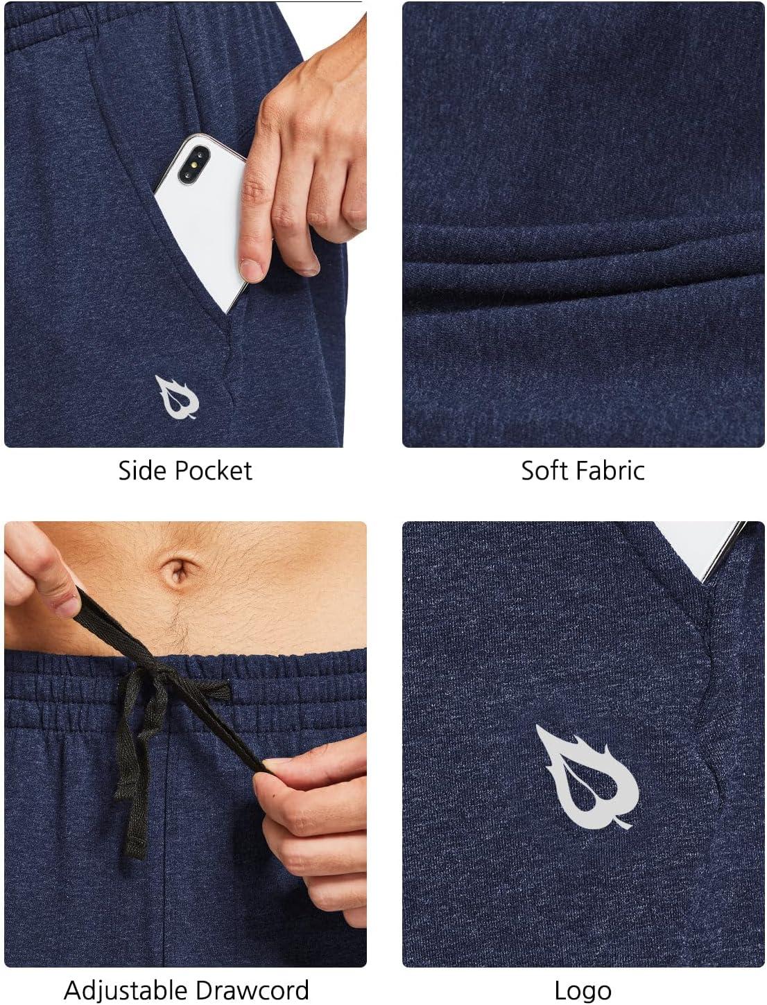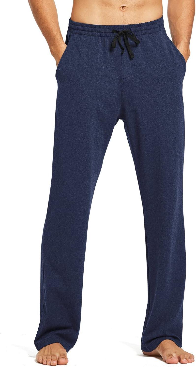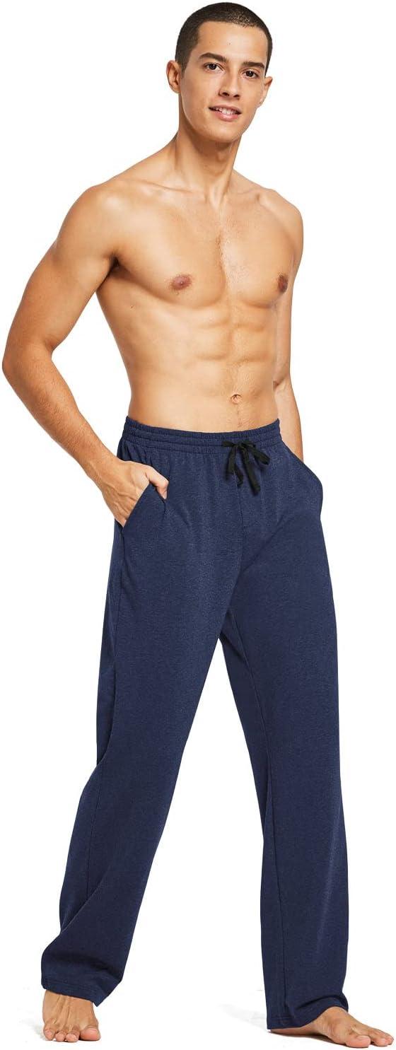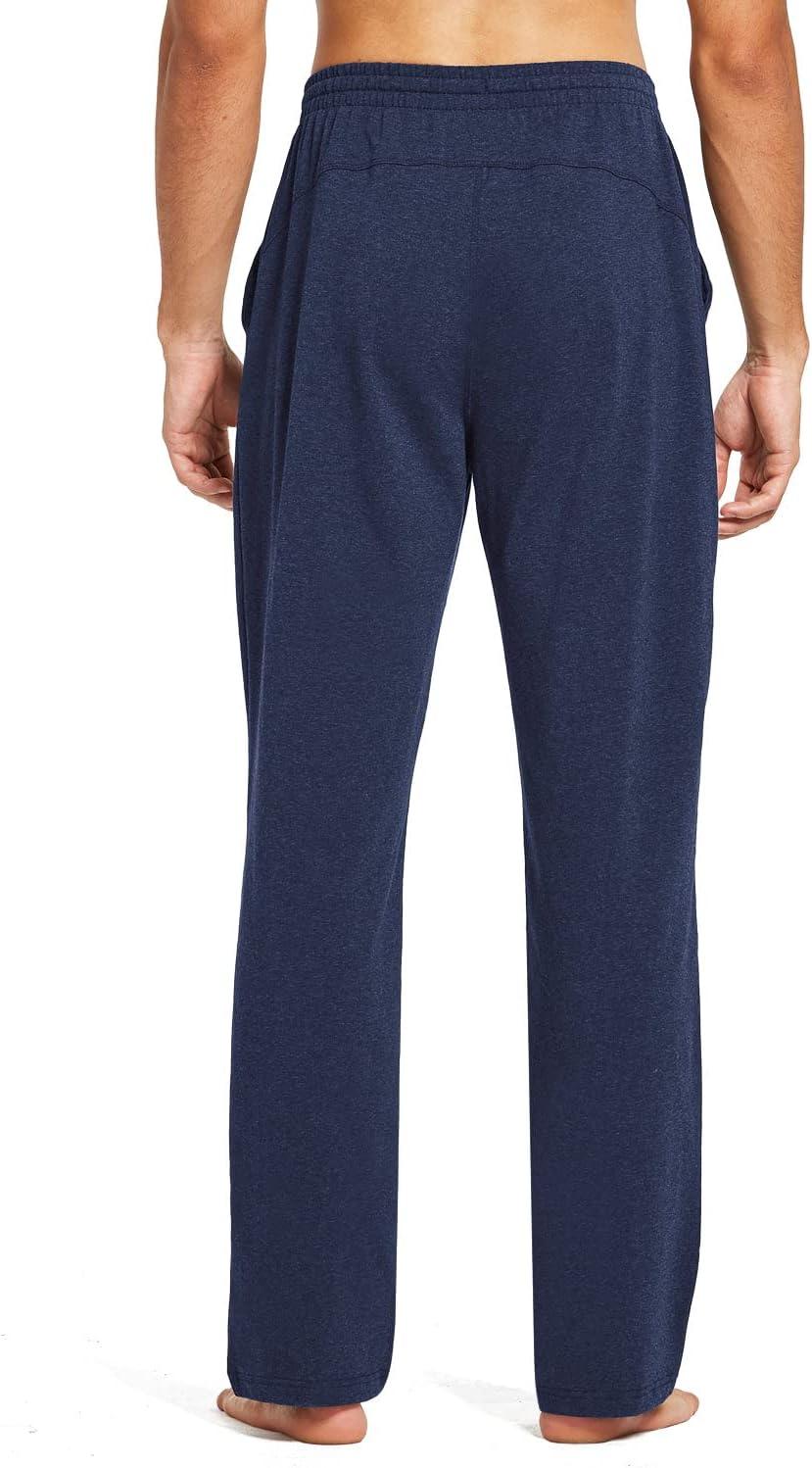 baleaf Men’s Sweatpants Yoga Lounge Cotton Pajama Pants Casual Open Bottom Straight Leg Stretchy Sweat Pants with Pockets(A-heather Blue)