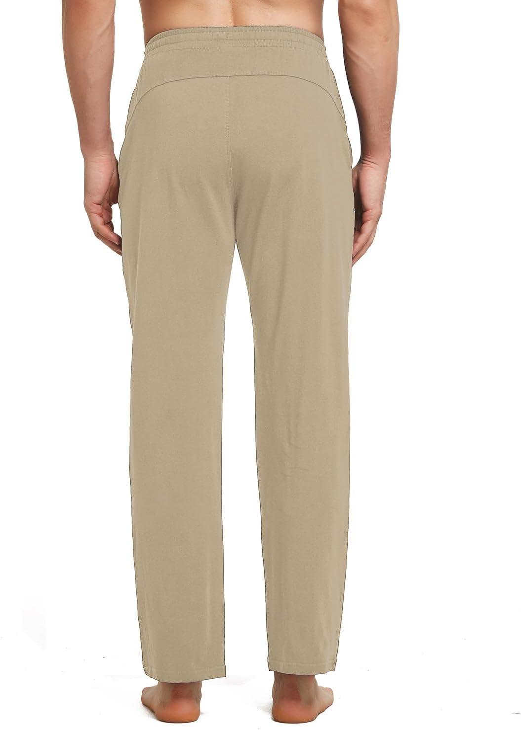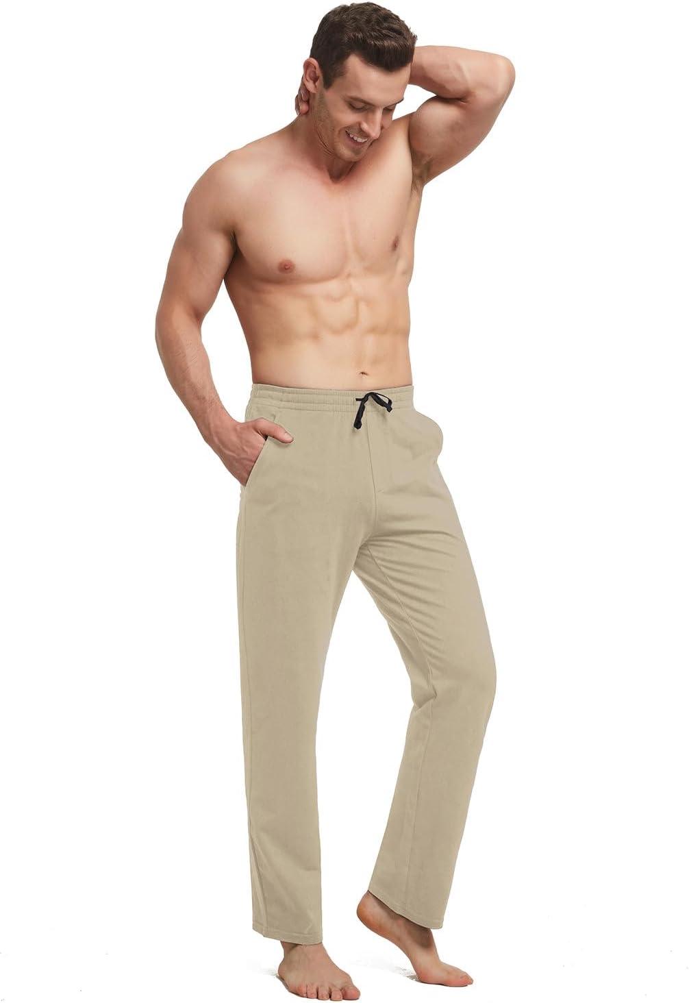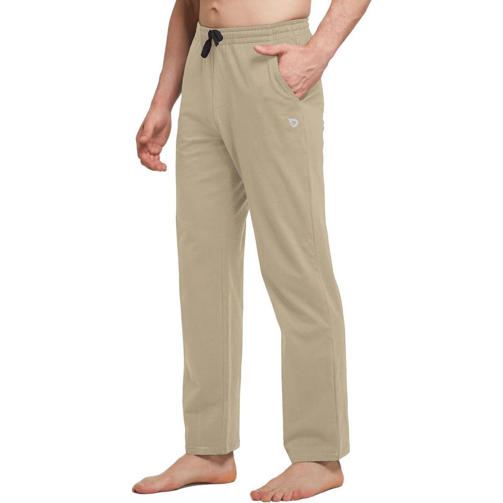 baleaf Men's Sweatpants Yoga Lounge Cotton Pajama Pants Casual Open Bottom Straight Leg Stretchy Sweat Pants with Pockets(A-khaki)