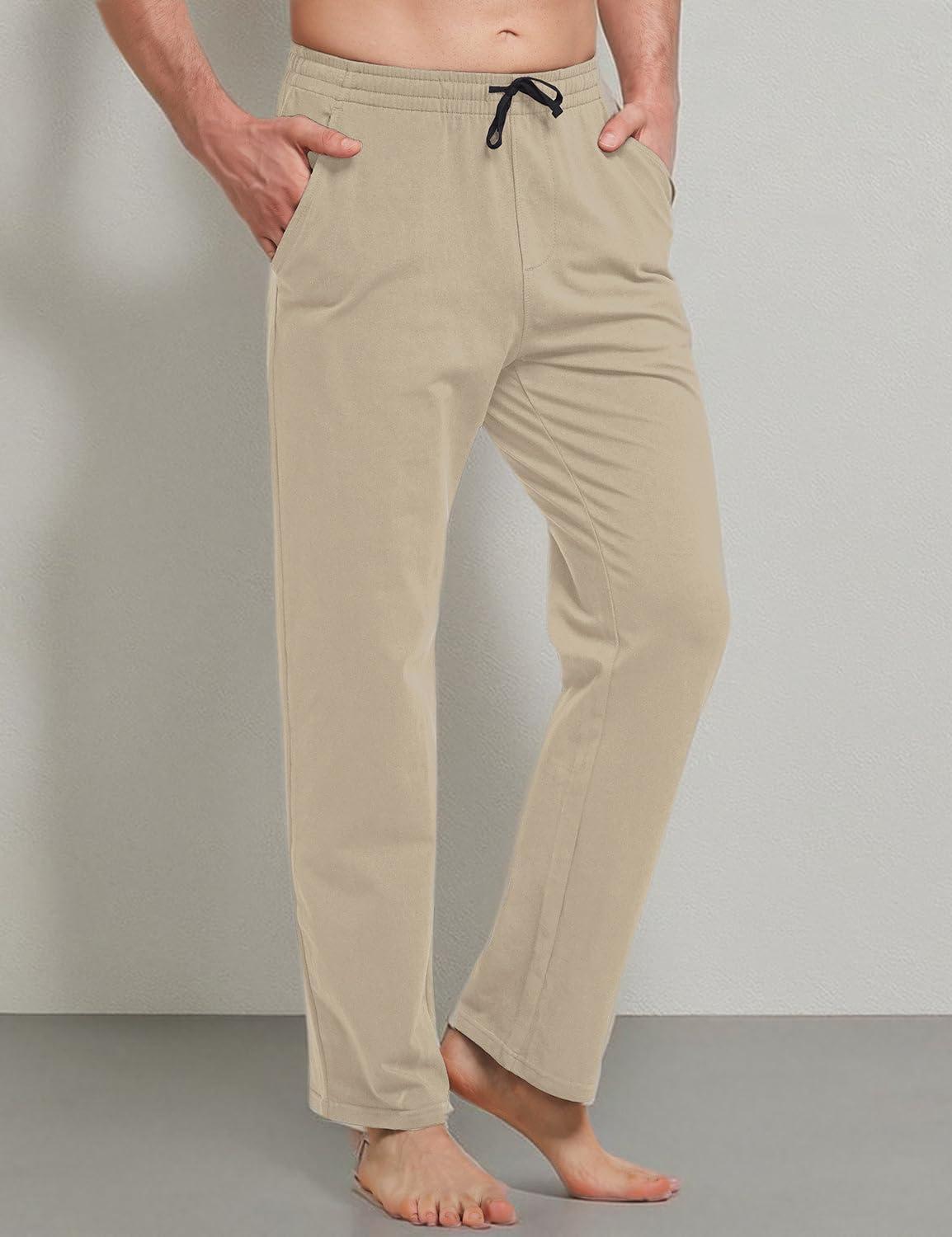 imagebaleaf Mens Sweatpants Yoga Lounge Cotton Pajama Pants Casual Open Bottom Straight Leg Stretchy Sweat Pants with PocketsAkhaki