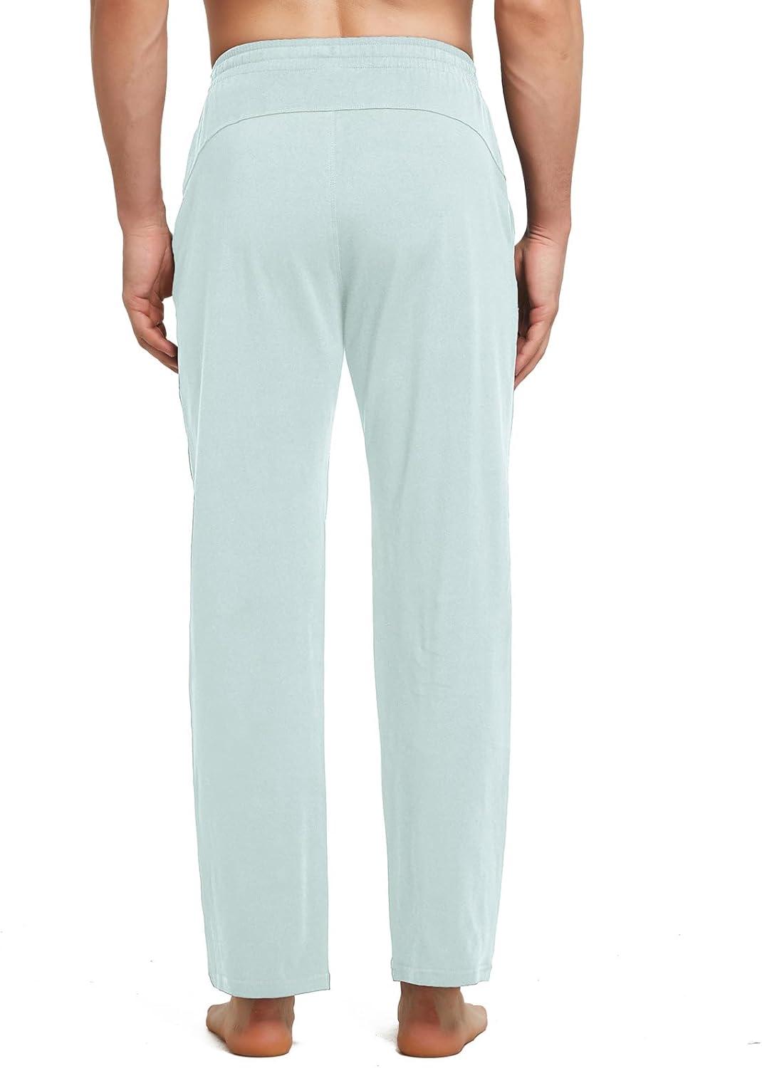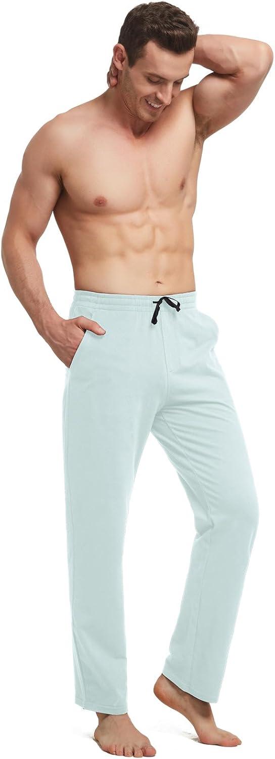 baleaf Men’s Sweatpants Yoga Lounge Cotton Pajama Pants Casual Open Bottom Straight Leg Stretchy Sweat Pants with Pockets(A-light Blue)