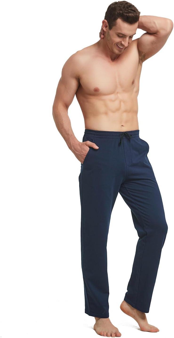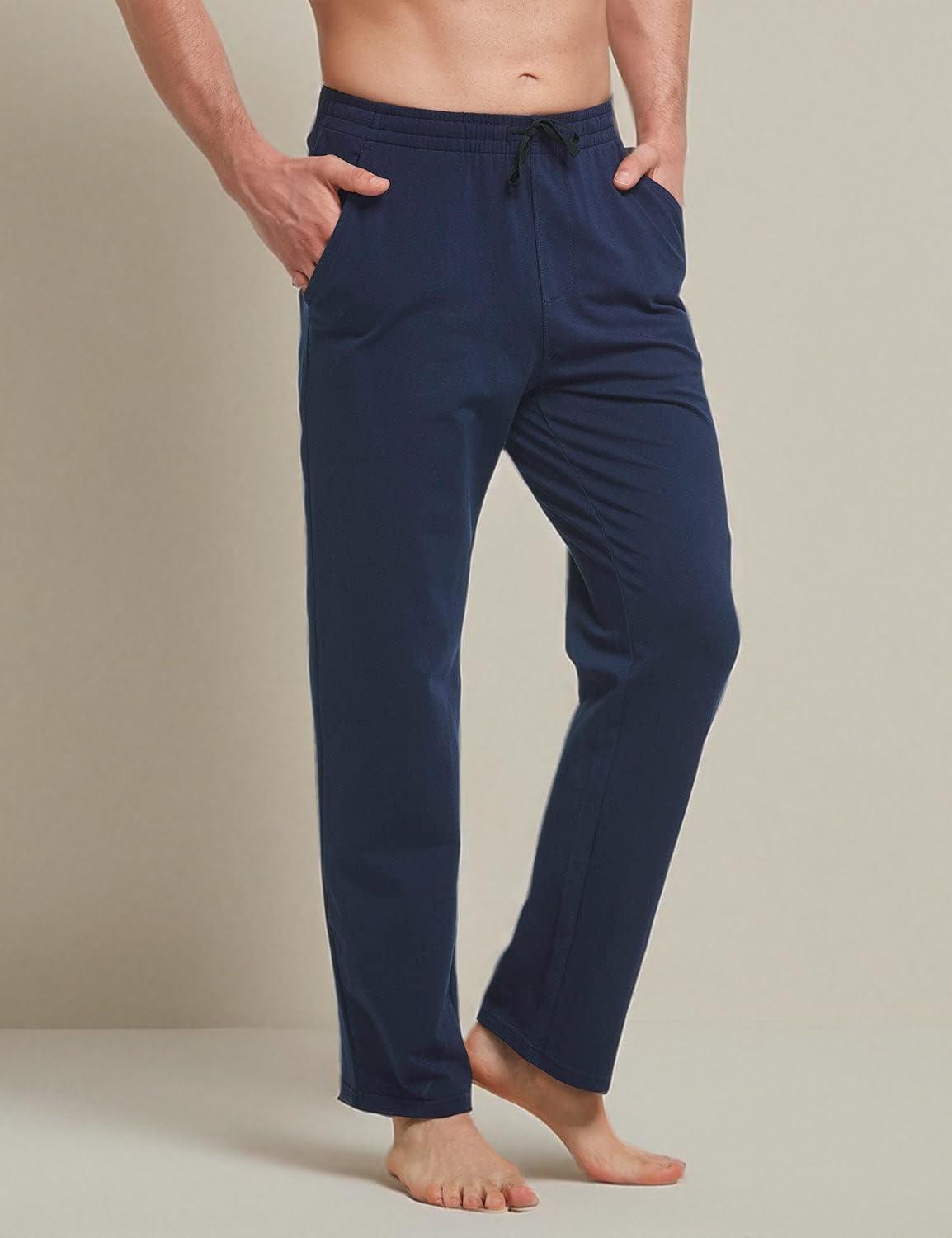 imagebaleaf Mens Sweatpants Yoga Lounge Cotton Pajama Pants Casual Open Bottom Straight Leg Stretchy Sweat Pants with PocketsAnavy Blue