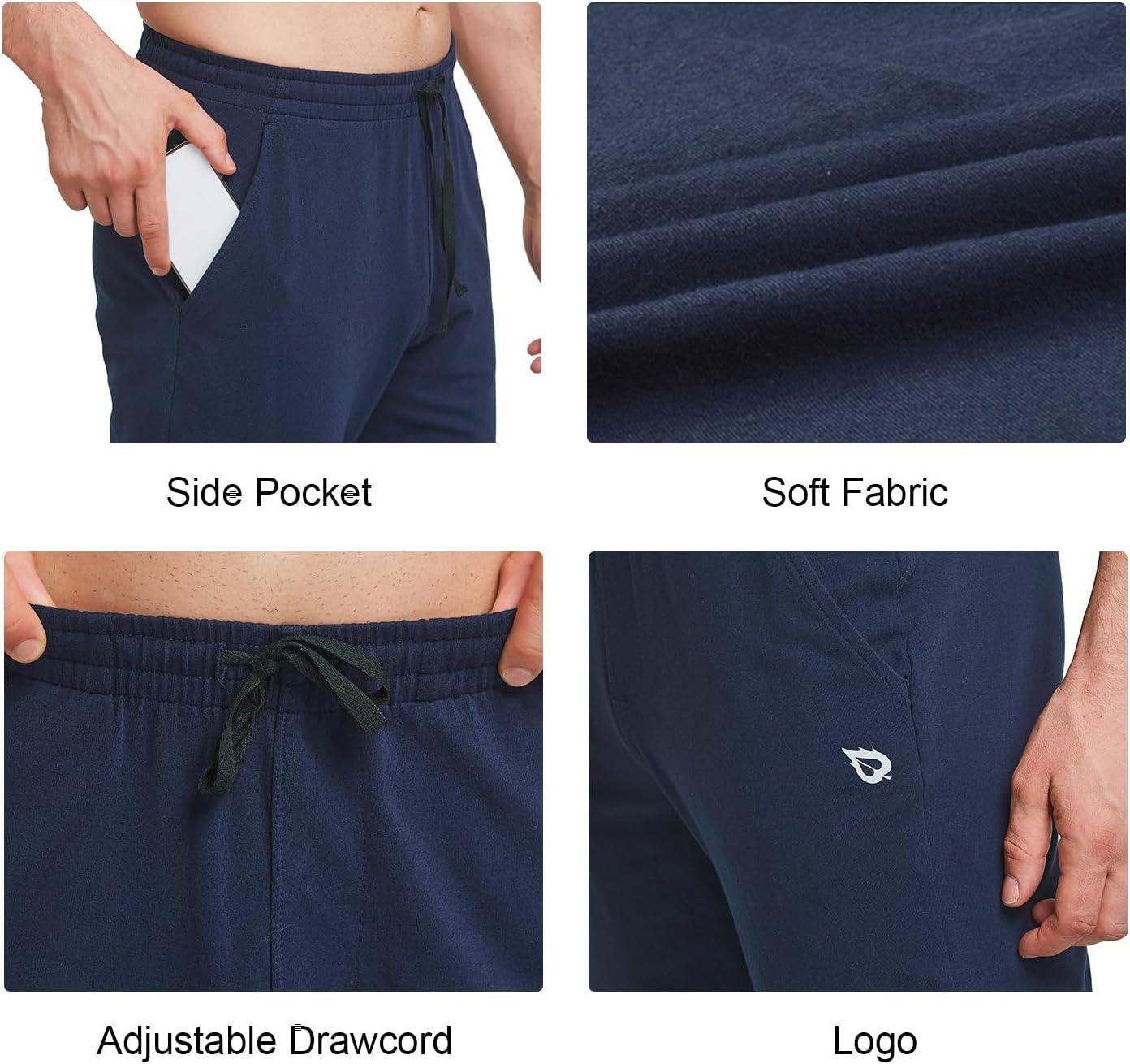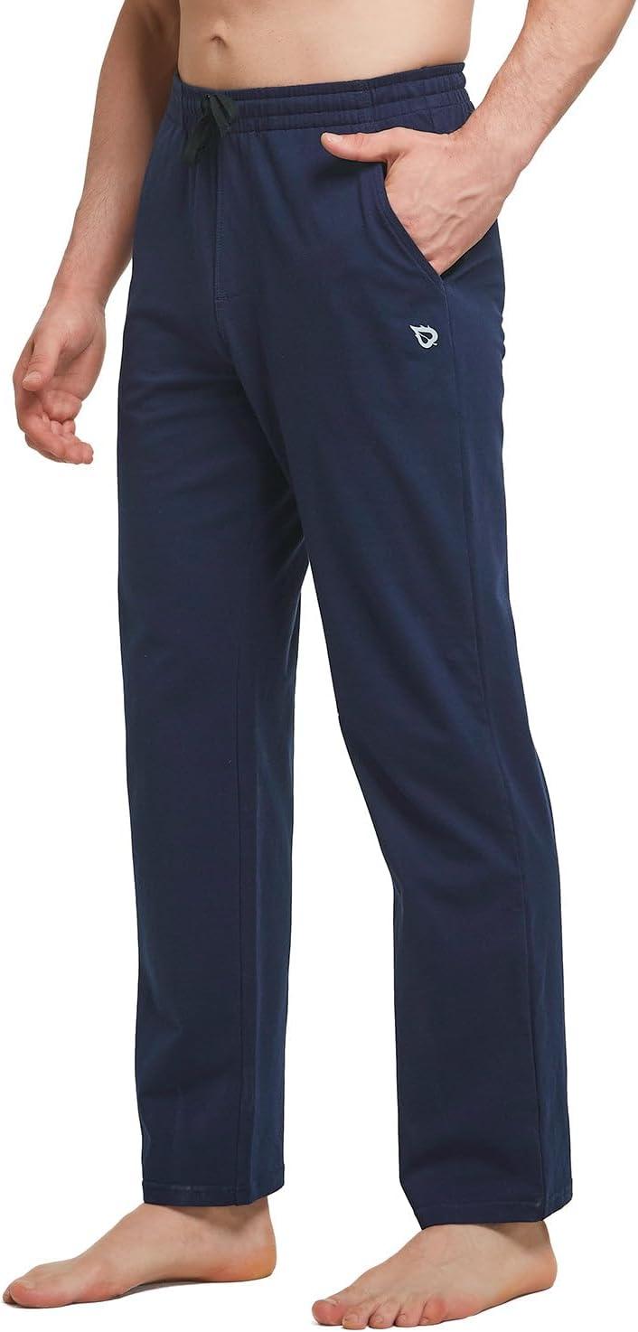 baleaf Men’s Sweatpants Yoga Lounge Cotton Pajama Pants Casual Open Bottom Straight Leg Stretchy Sweat Pants with Pockets(A-navy Blue)