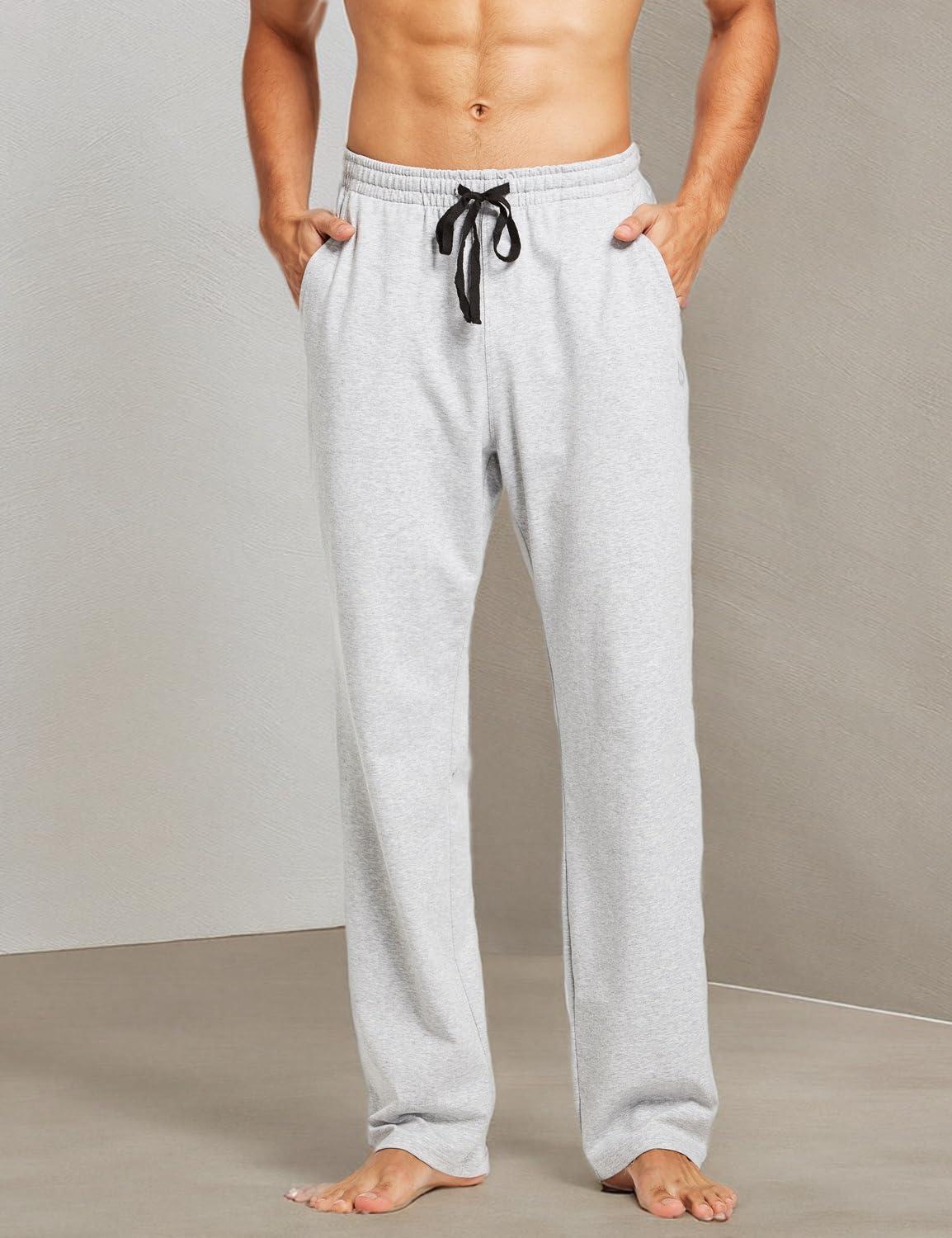 imagebaleaf Mens Sweatpants Yoga Lounge Cotton Pajama Pants Casual Open Bottom Straight Leg Stretchy Sweat Pants with PocketsBblackLight Gray