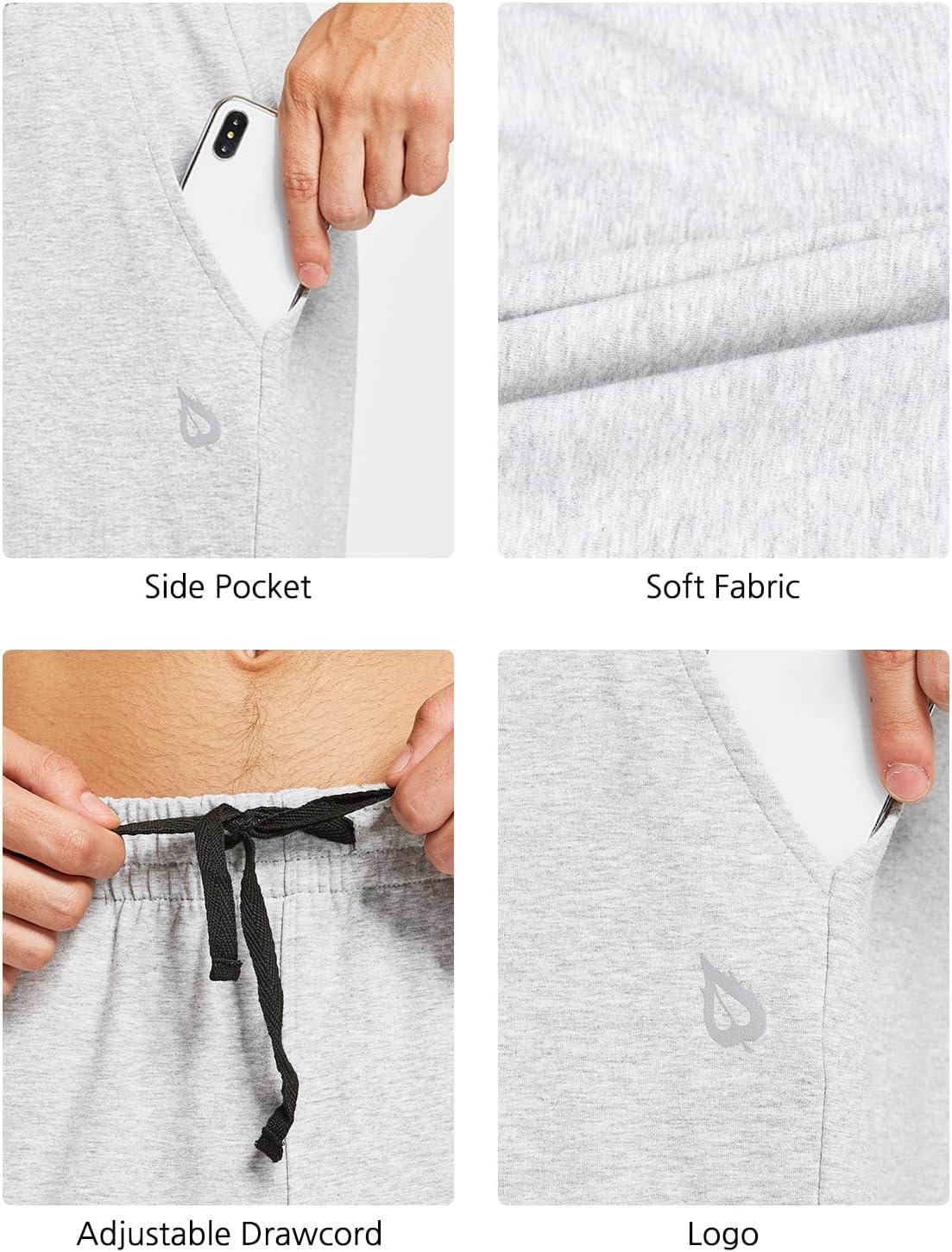 baleaf Men’s Sweatpants Yoga Lounge Cotton Pajama Pants Casual Open Bottom Straight Leg Stretchy Sweat Pants with Pockets(B-black/Light Gray)