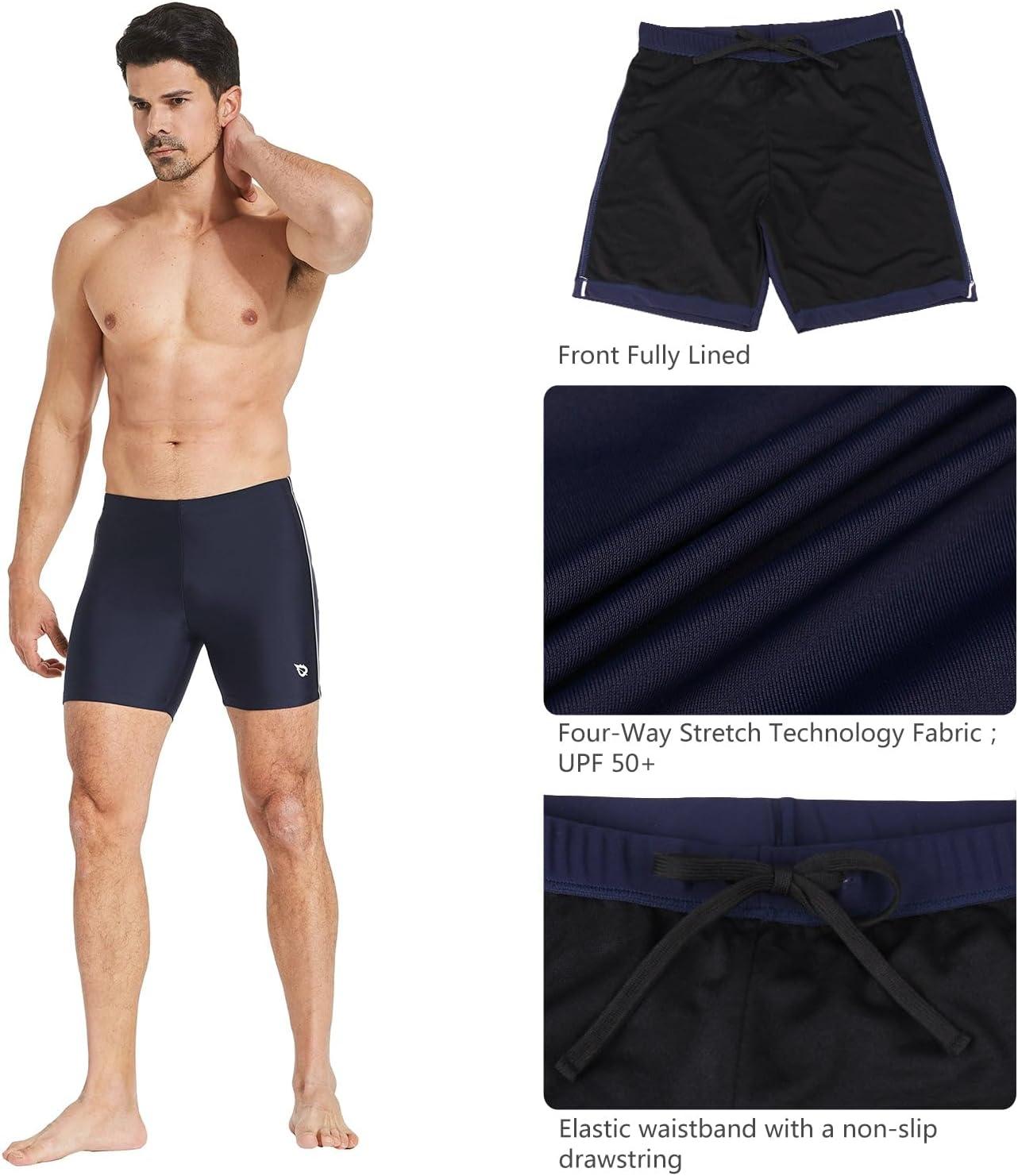 baleaf Men’s Swim Jammers Athletic Swimwear Quick Dry Compression Brief Swimsuit UPF 50+ Endurance Racing Training(Navy White)