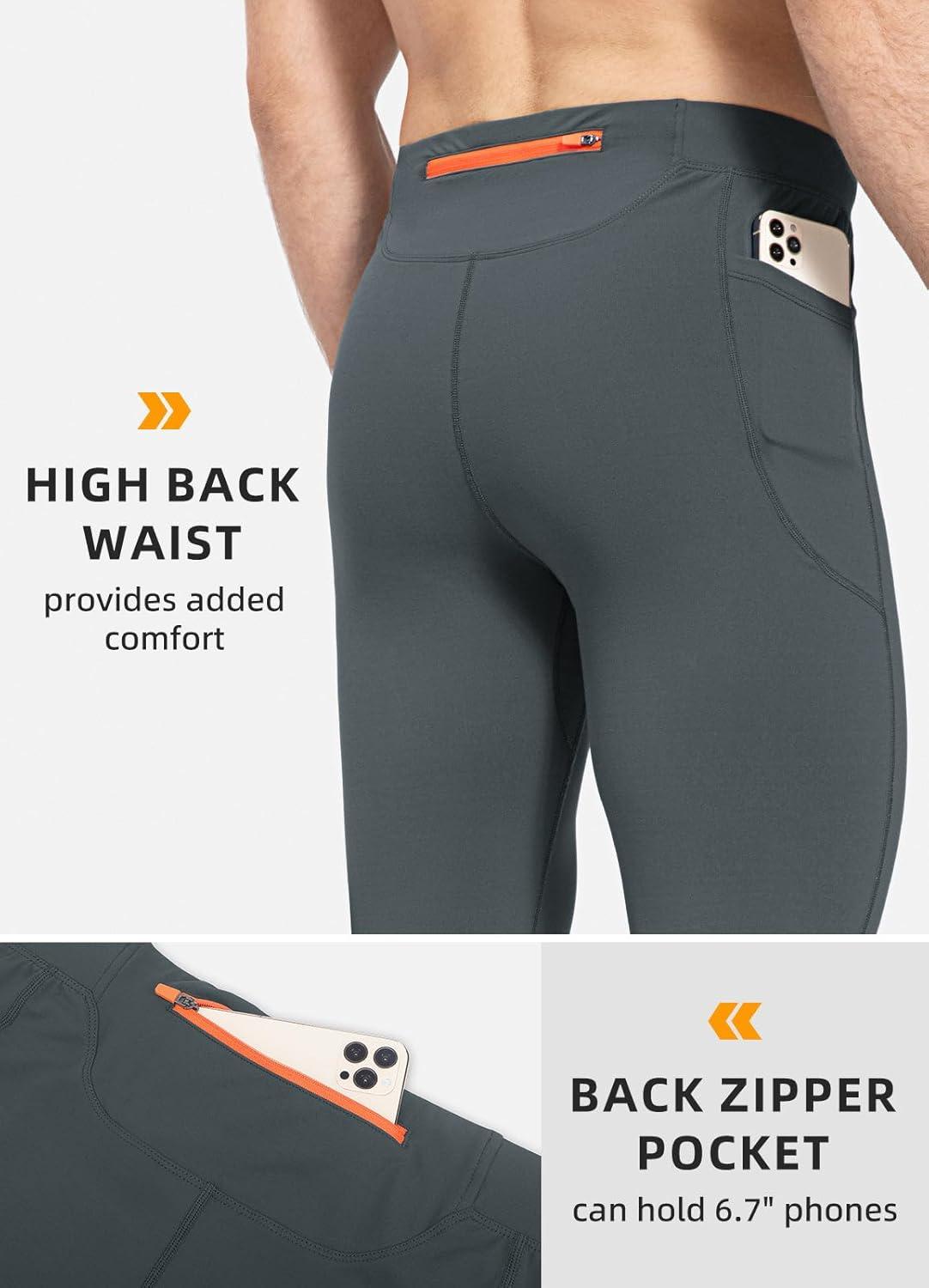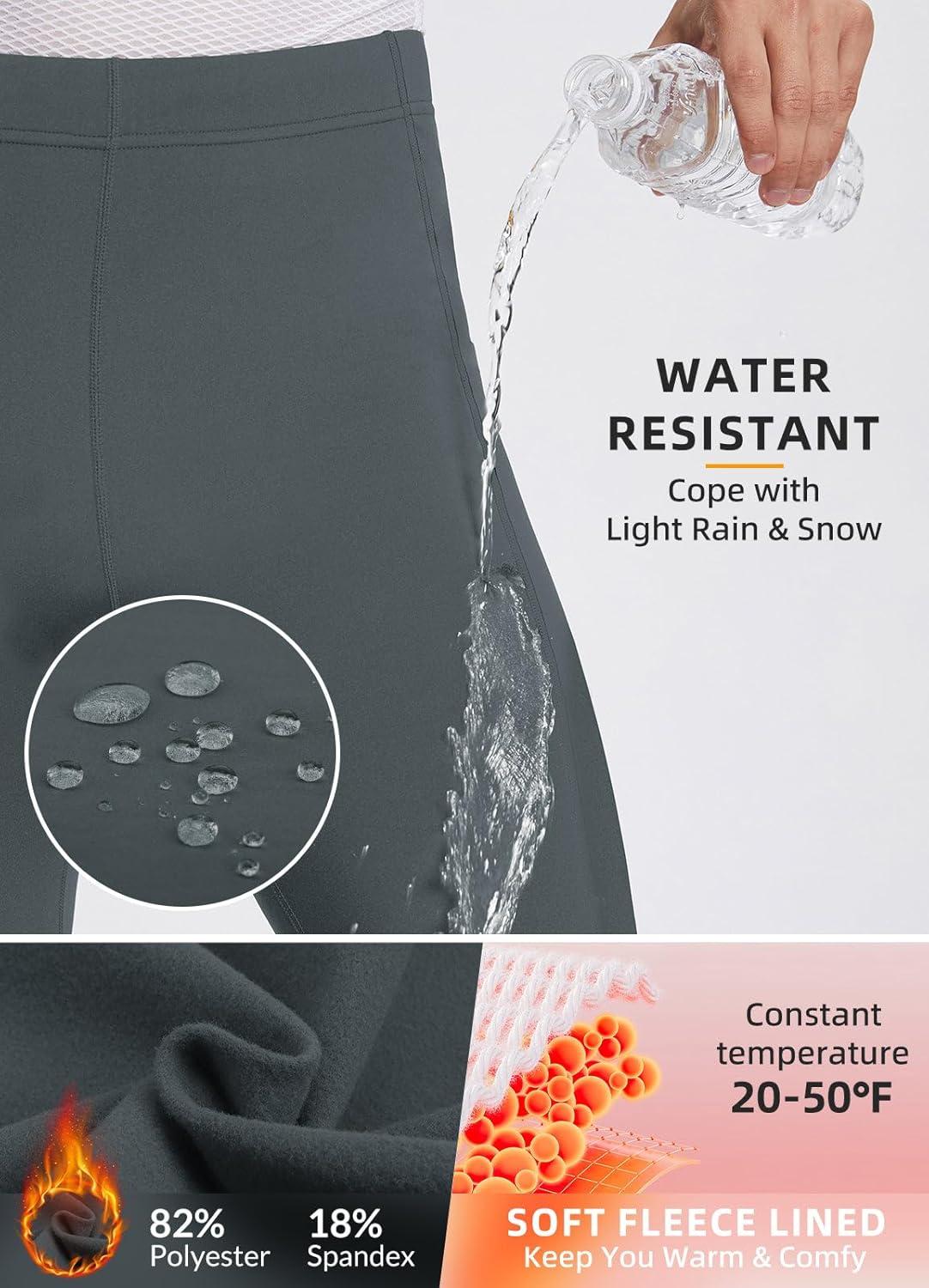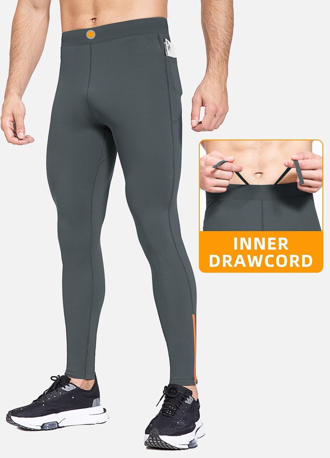 imagebaleaf Mens Winter Running Tights Thermal Cycling Pants Water Resistant Fleece Leggings Zipper Pockets Cold Weather GearDark Grey