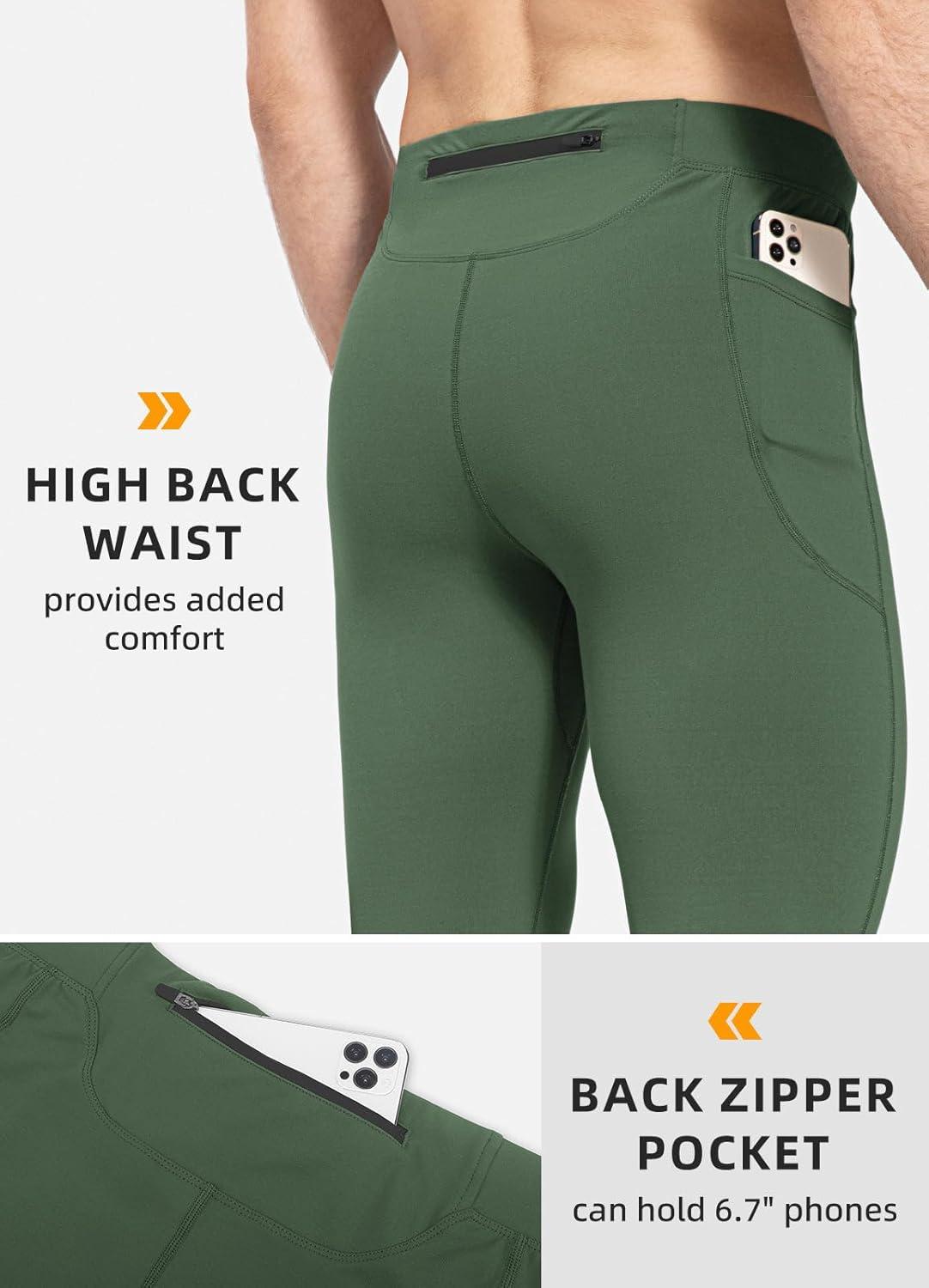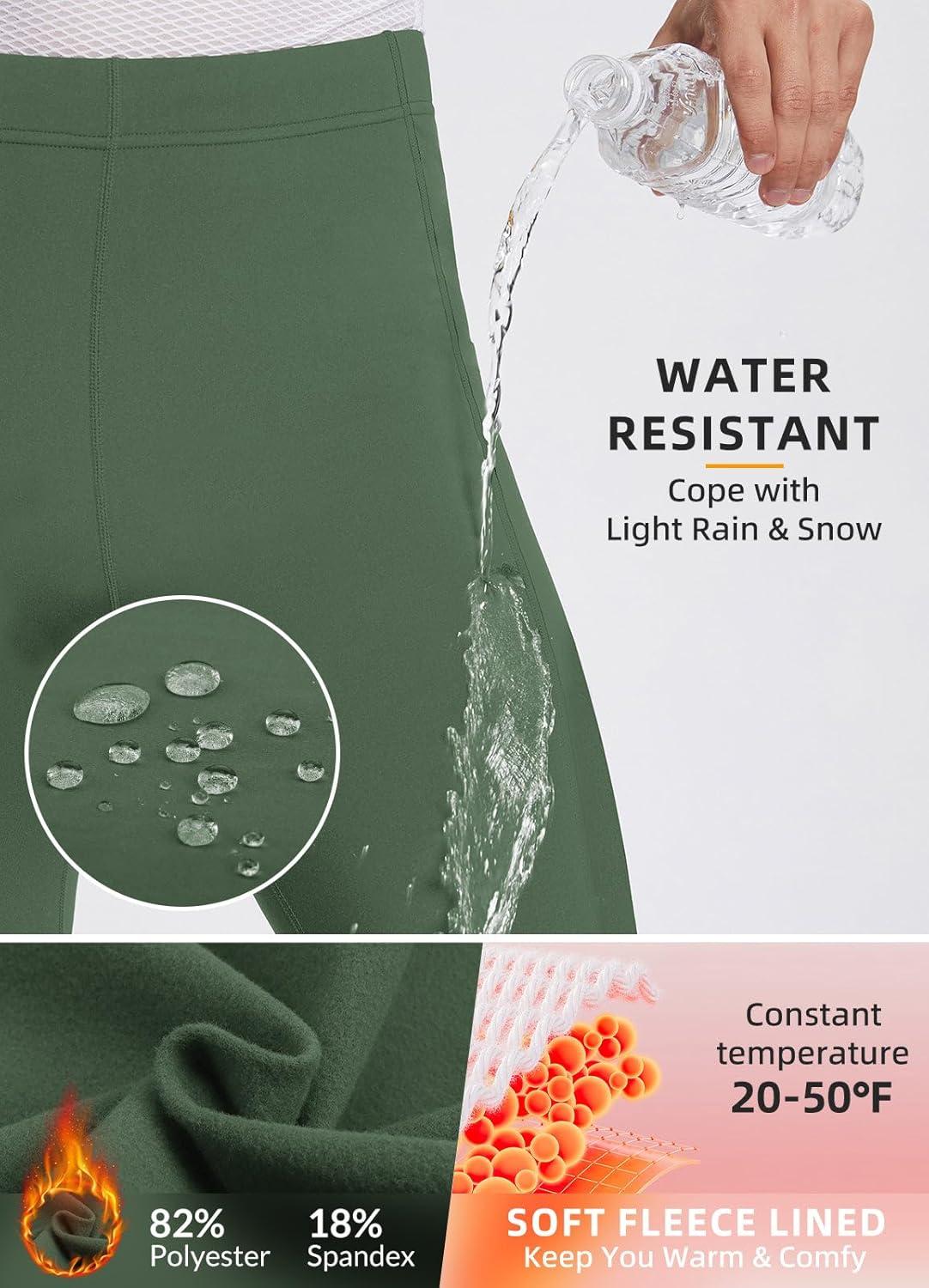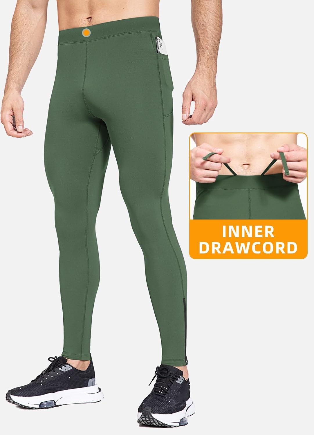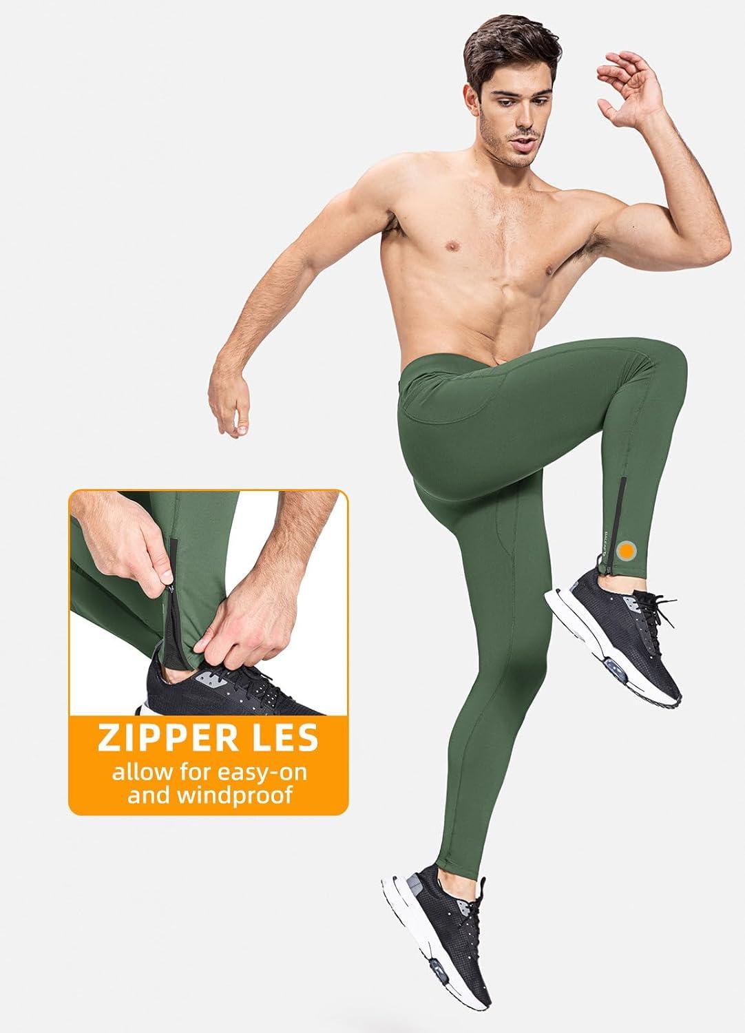 imagebaleaf Mens Winter Running Tights Thermal Cycling Pants Water Resistant Fleece Leggings Zipper Pockets Cold Weather GearGreen