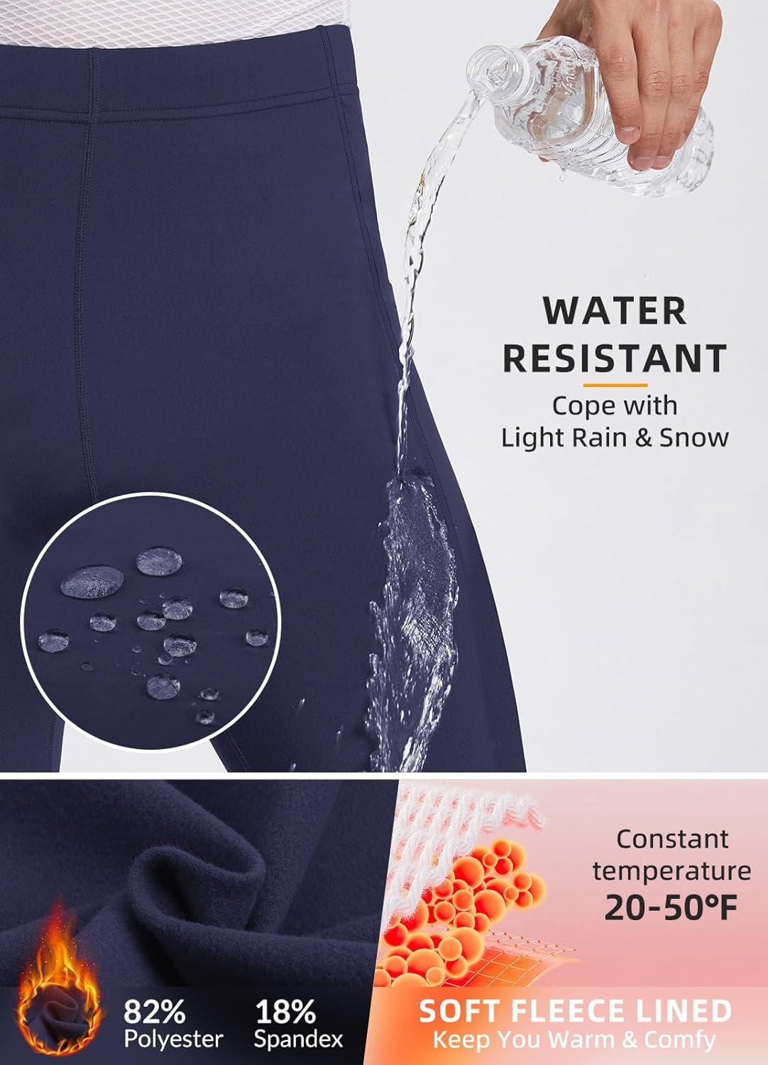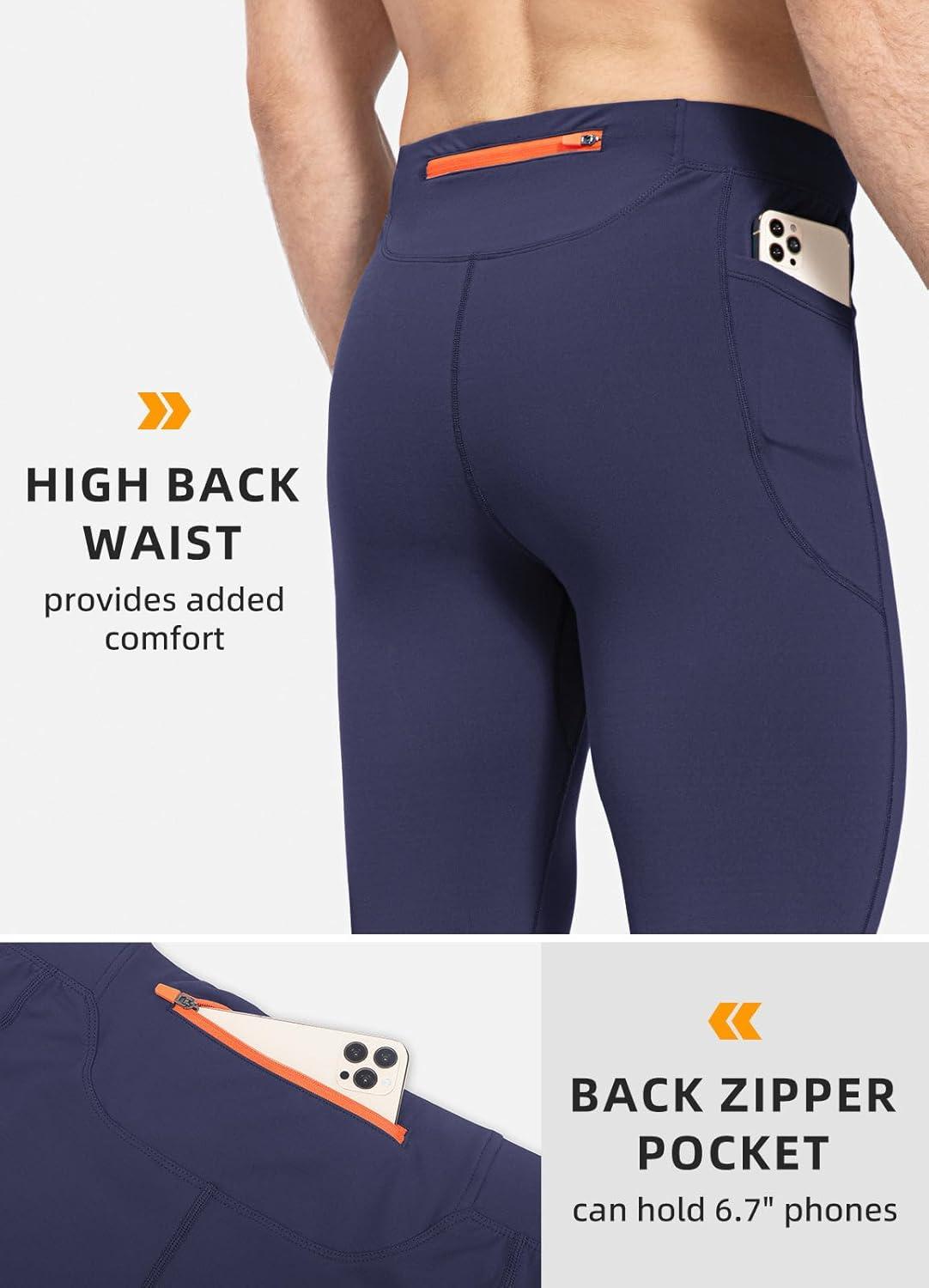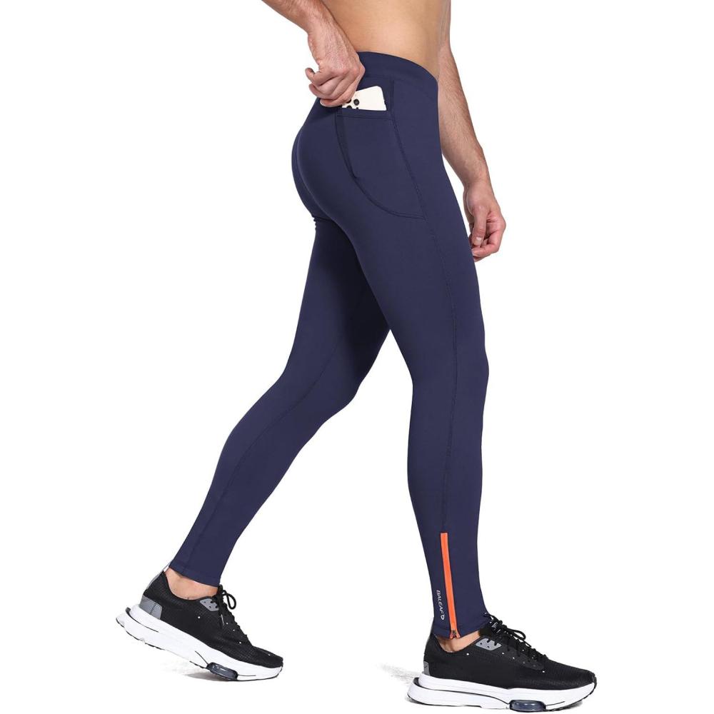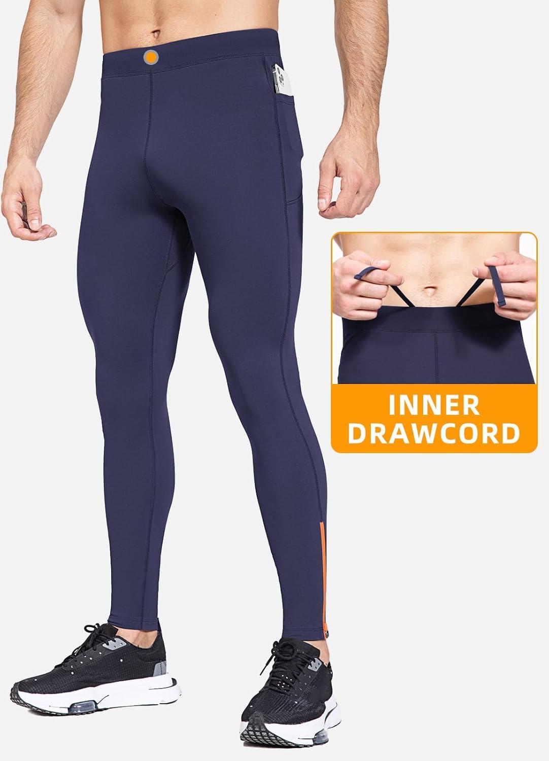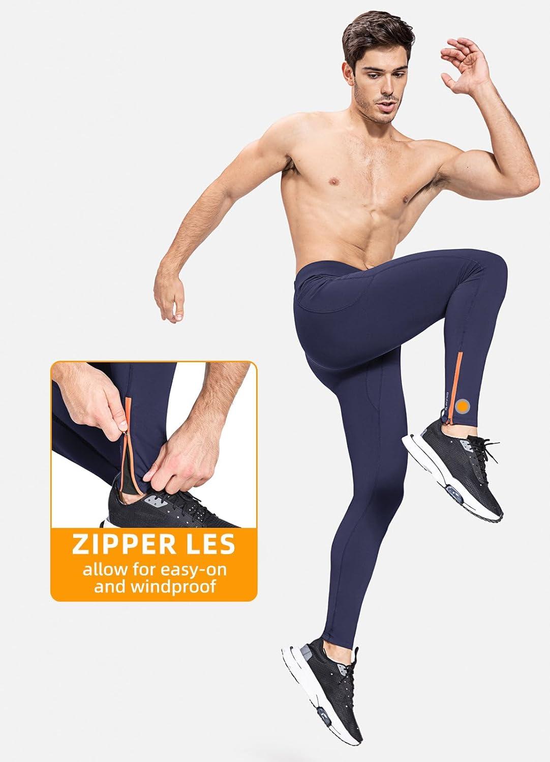 imagebaleaf Mens Winter Running Tights Thermal Cycling Pants Water Resistant Fleece Leggings Zipper Pockets Cold Weather GearNavy