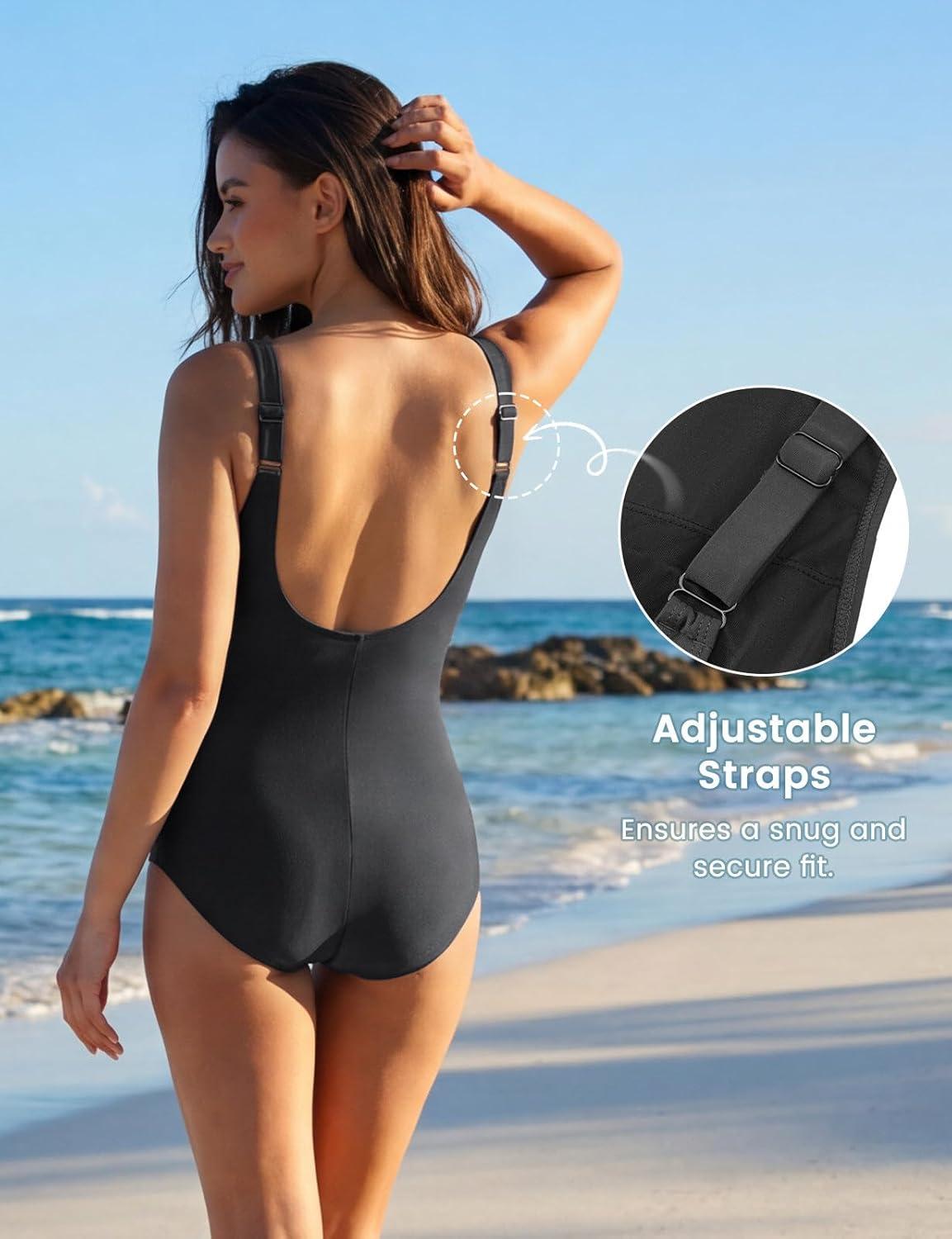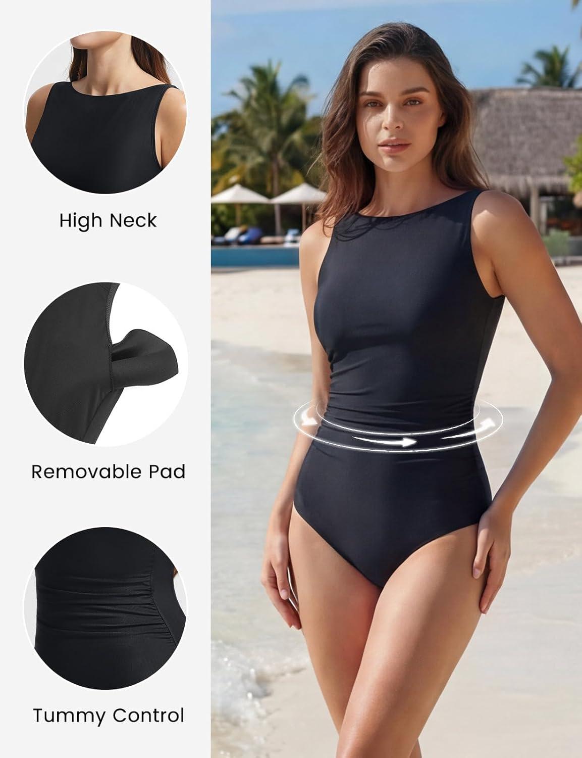 imagebaleaf One Piece Swimsuit Women Tummy Control Bathing Suit High Neck Swimwear with Adjustable StrapsBlack