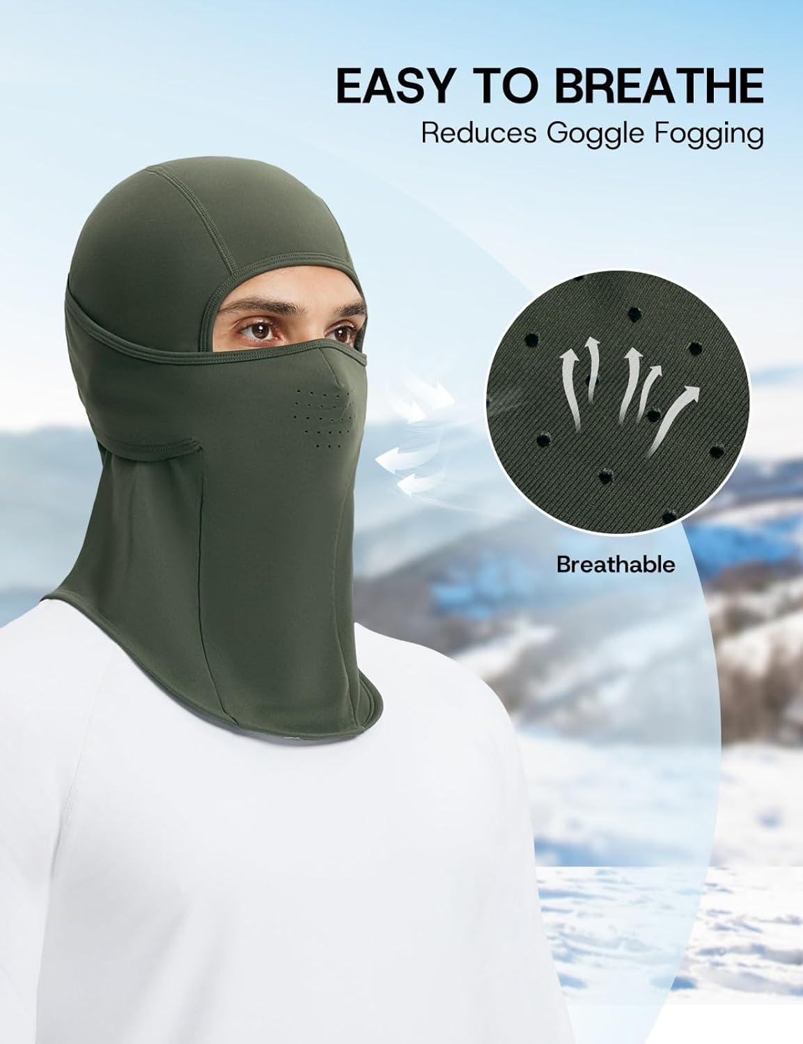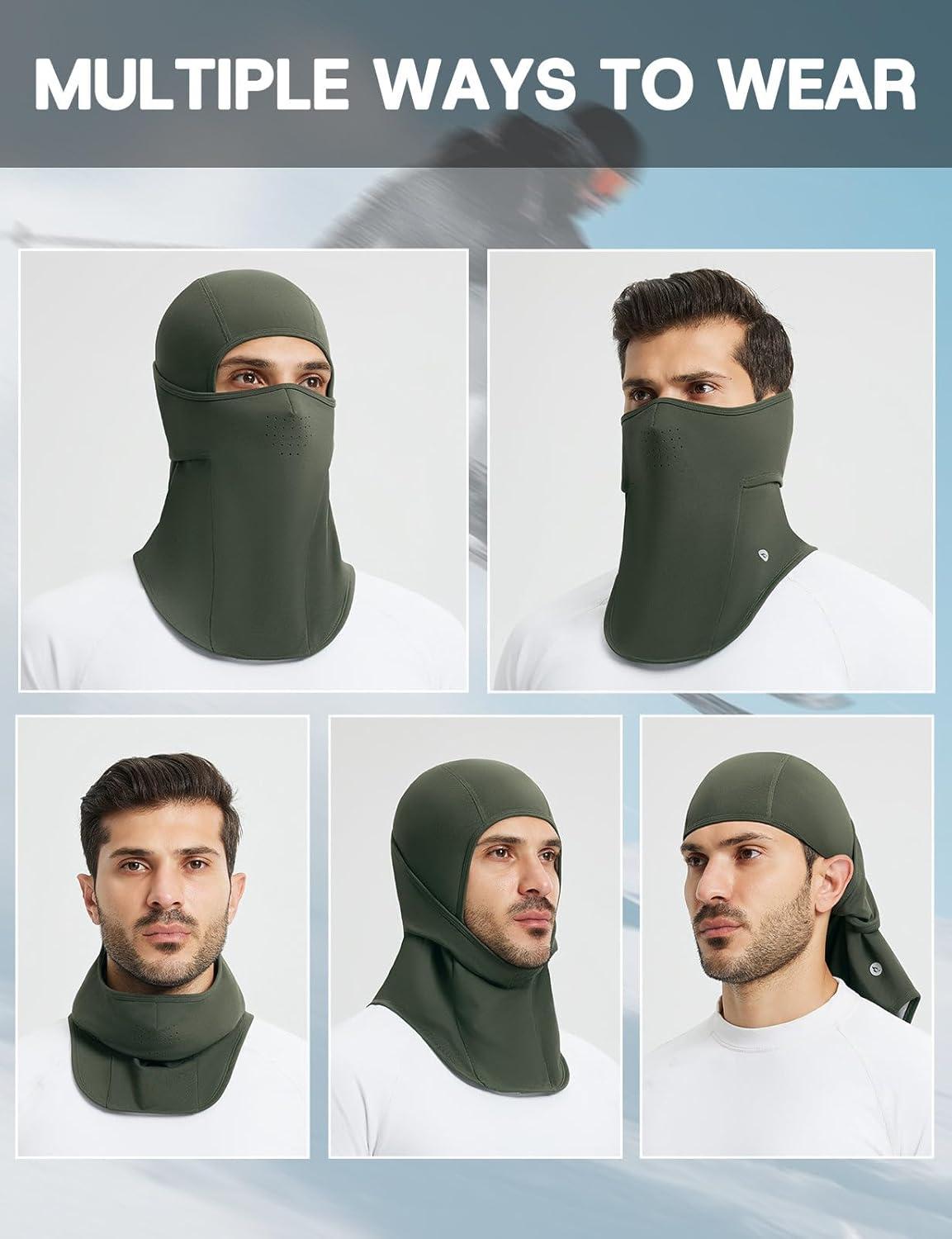 imagebaleaf Ski Mask Balaclava Face Mask Men Water Resistant Ski Mask for Women Cold Weather Snowboarding Gear Fleece Neck GaiterArmy Green