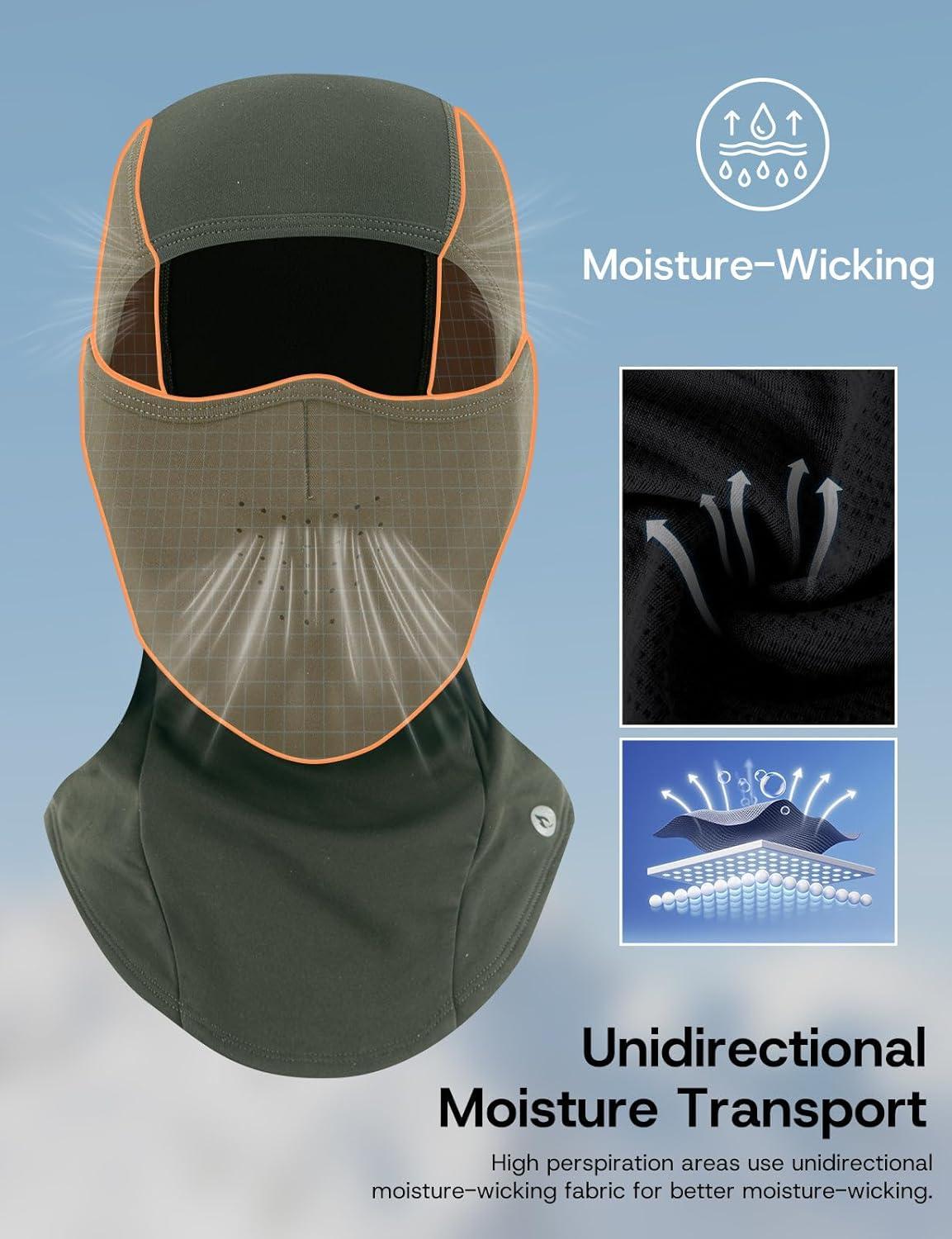 baleaf Ski Mask Balaclava Face Mask Men Water Resistant Ski Mask for Women Cold Weather Snowboarding Gear Fleece Neck Gaiter(Army Green)